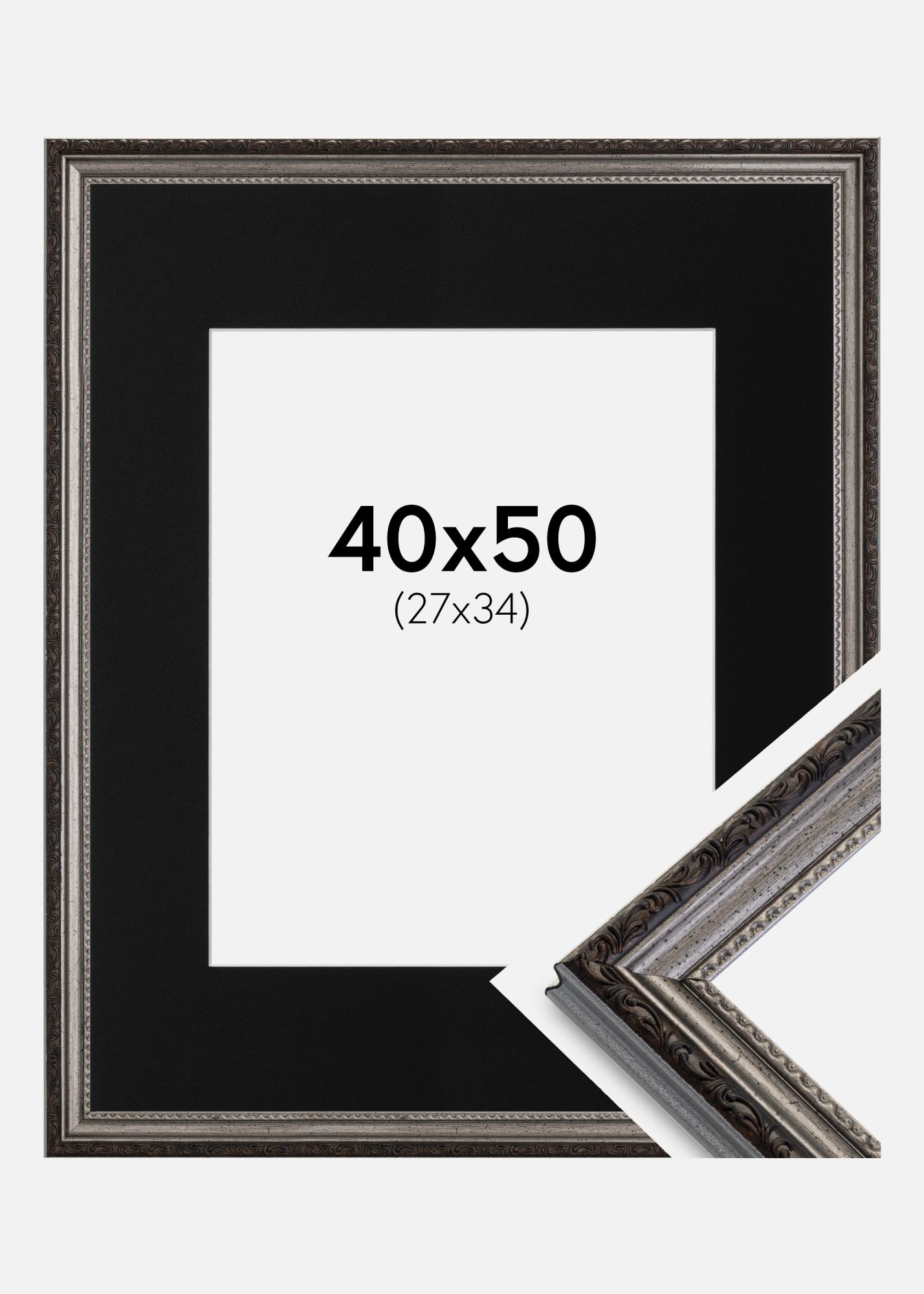 Moldura Abisko Prateado 40x50 cm - Passe-partout Preto 28x35 cm