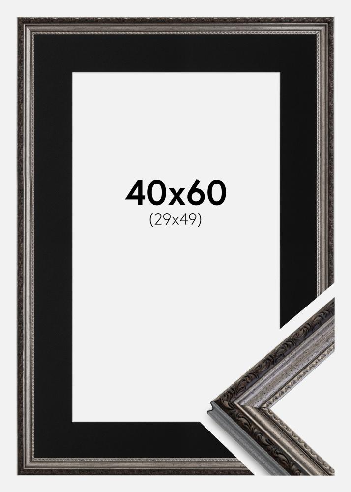 Moldura Abisko Prateado 40x60 cm - Passe-partout Preto 30x50 cm