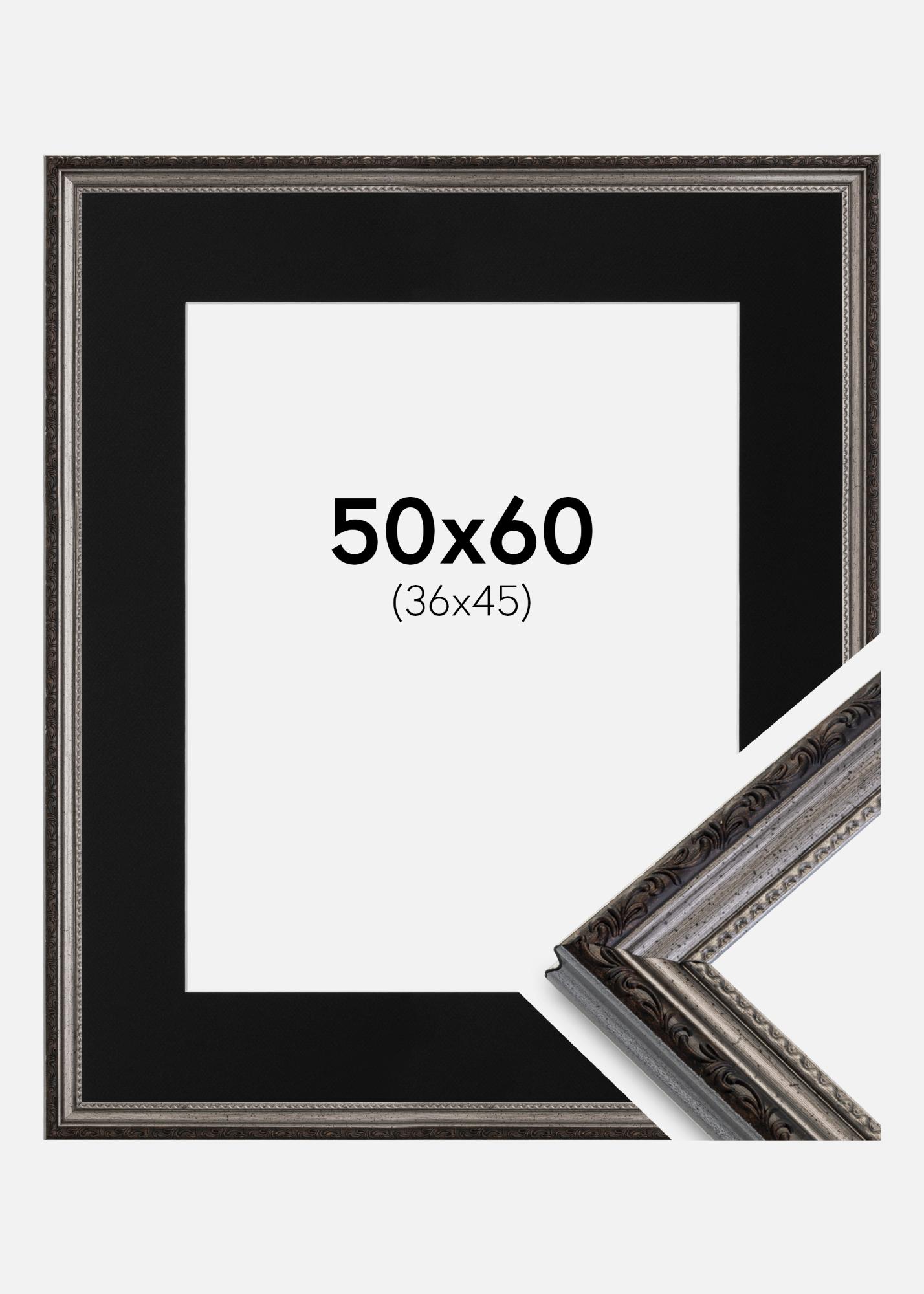 Moldura Abisko Prateado 50x60 cm - Passe-partout Preto 37x46 cm