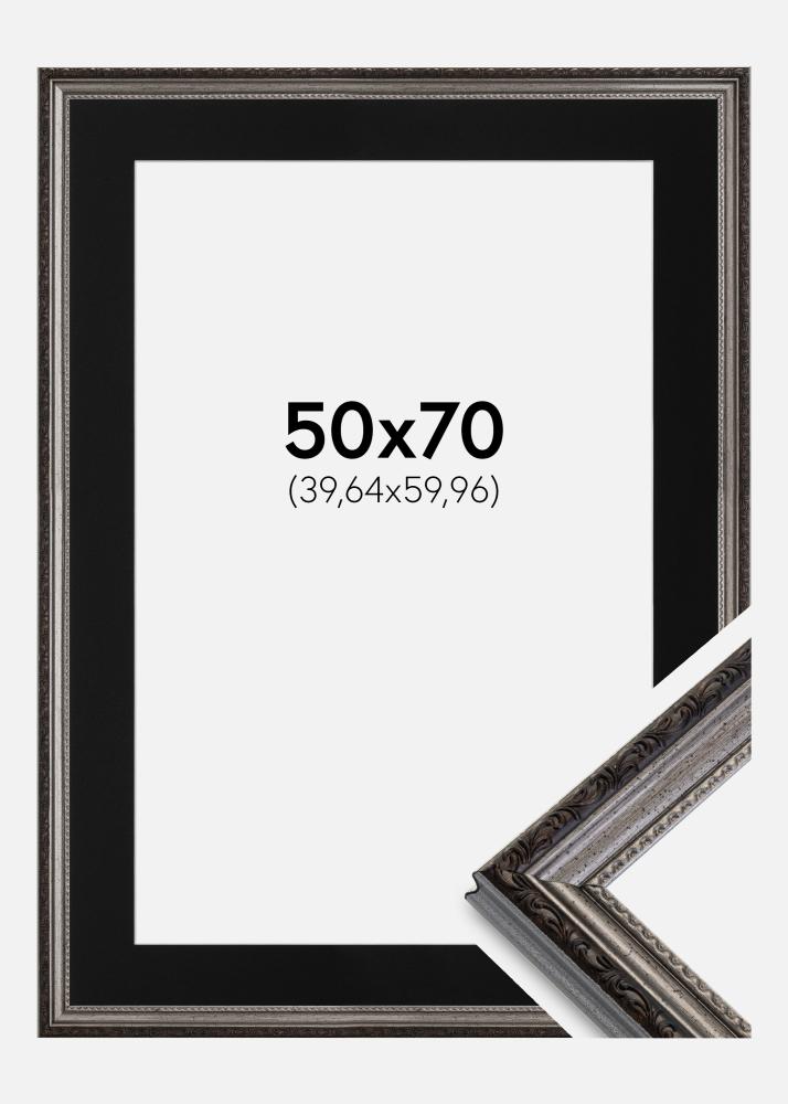Moldura Abisko Prateado 50x70 cm - Passe-partout Preto 16x24 inches