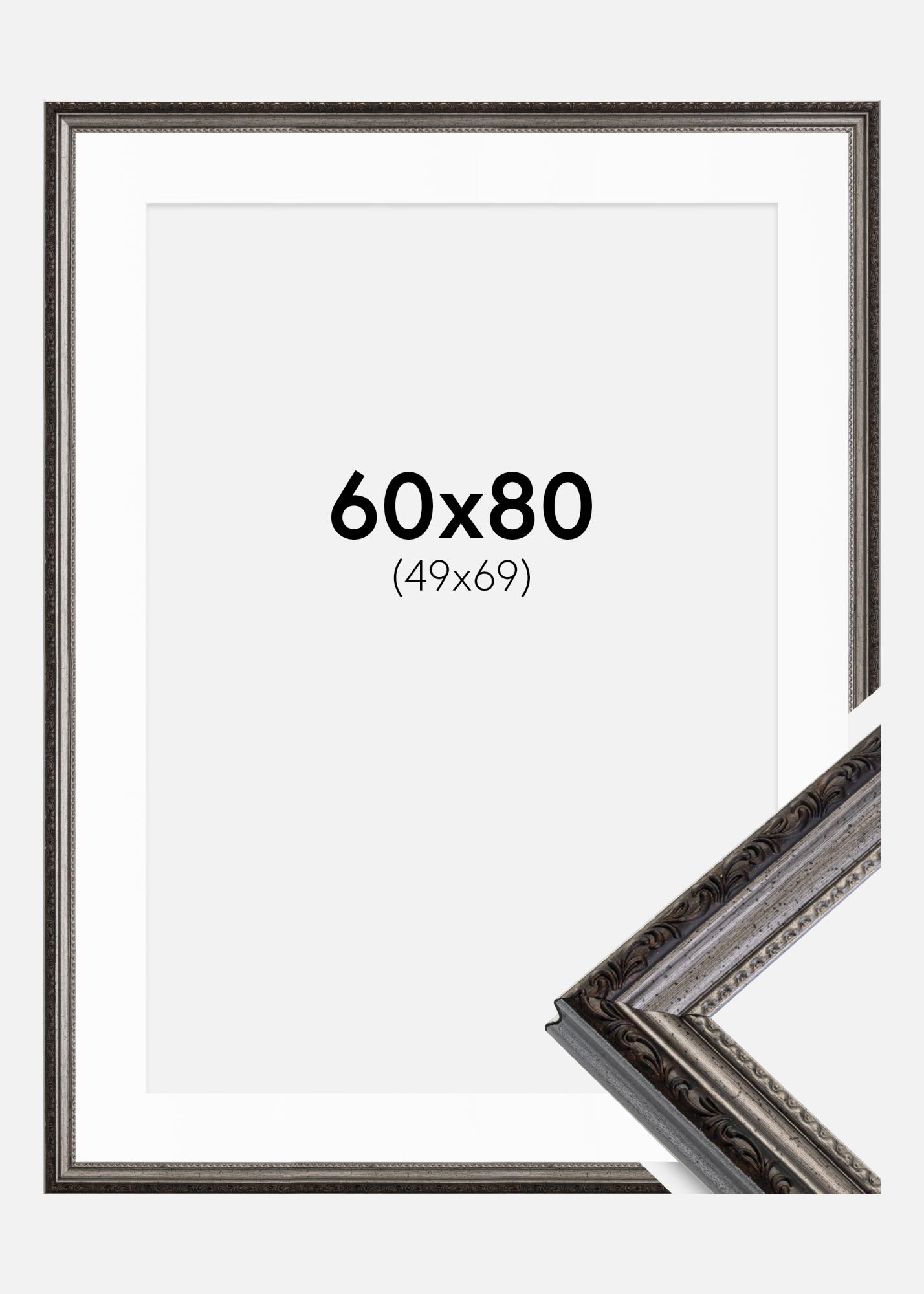Moldura Abisko Prateado 60x80 cm - Passe-partout Branco 50x70 cm