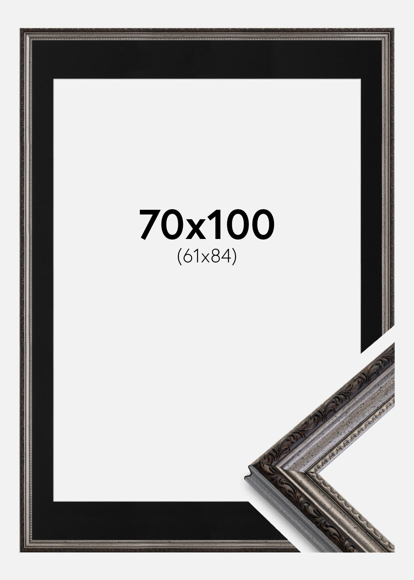 Moldura Abisko Prateado 70x100 cm - Passe-partout Preto 62x85 cm