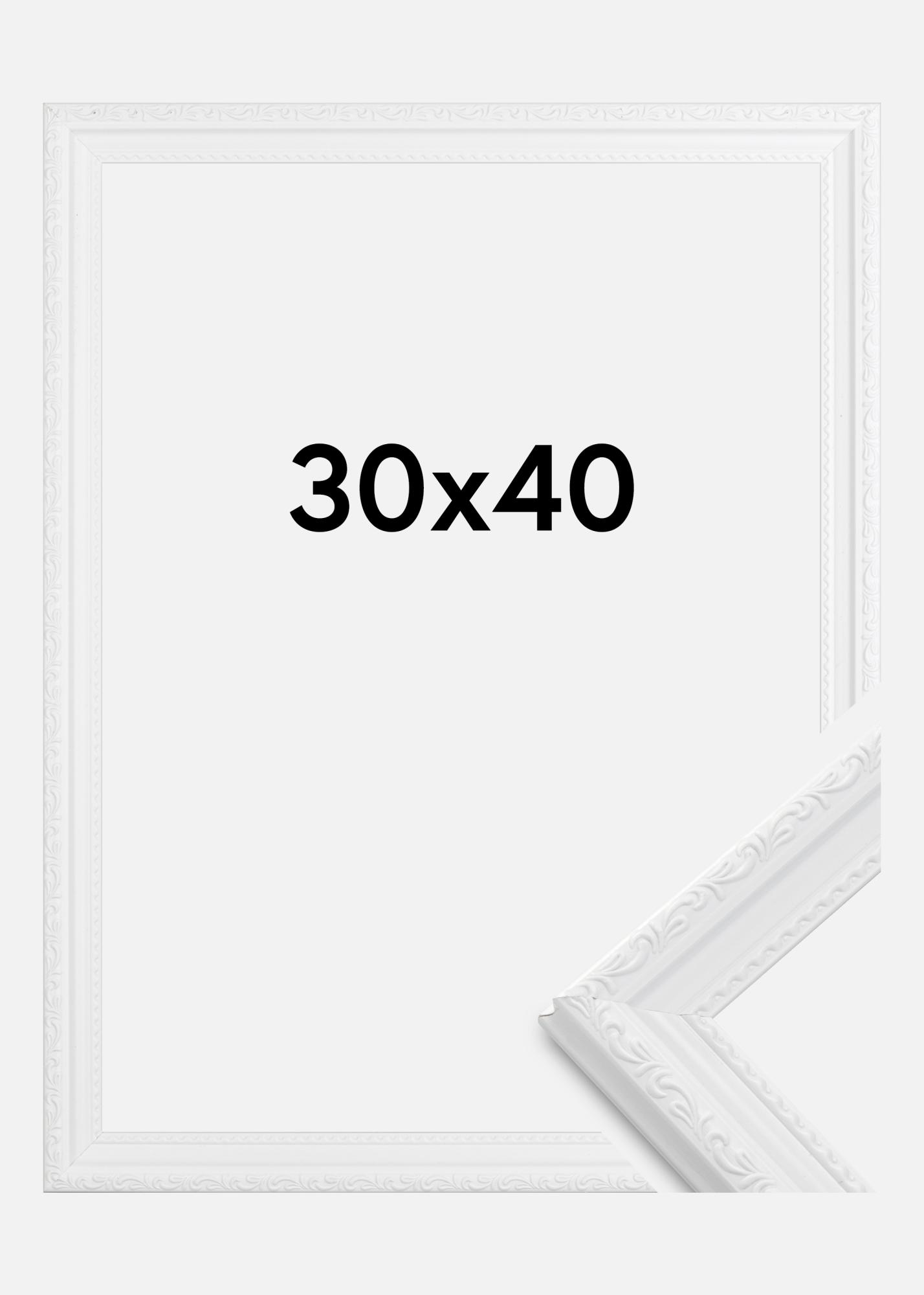 Iniciar o seletor de molduras »Abisko Branca é uma elegante moldura de fotos em estilo retro com belos enfeites. É perfeito quando procura uma moldura branca em estilo antigo.