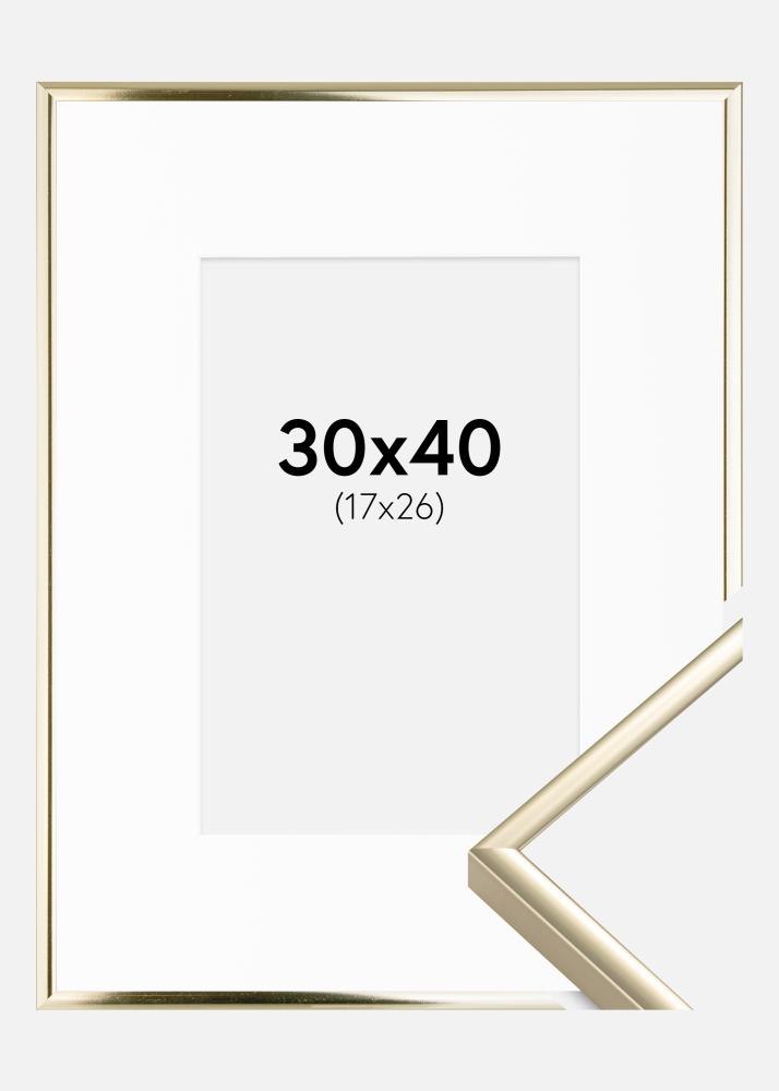 Moldura Alumínio Brilhante Dourado 30x40 cm - Passe-partout Branco 18x27 cm
