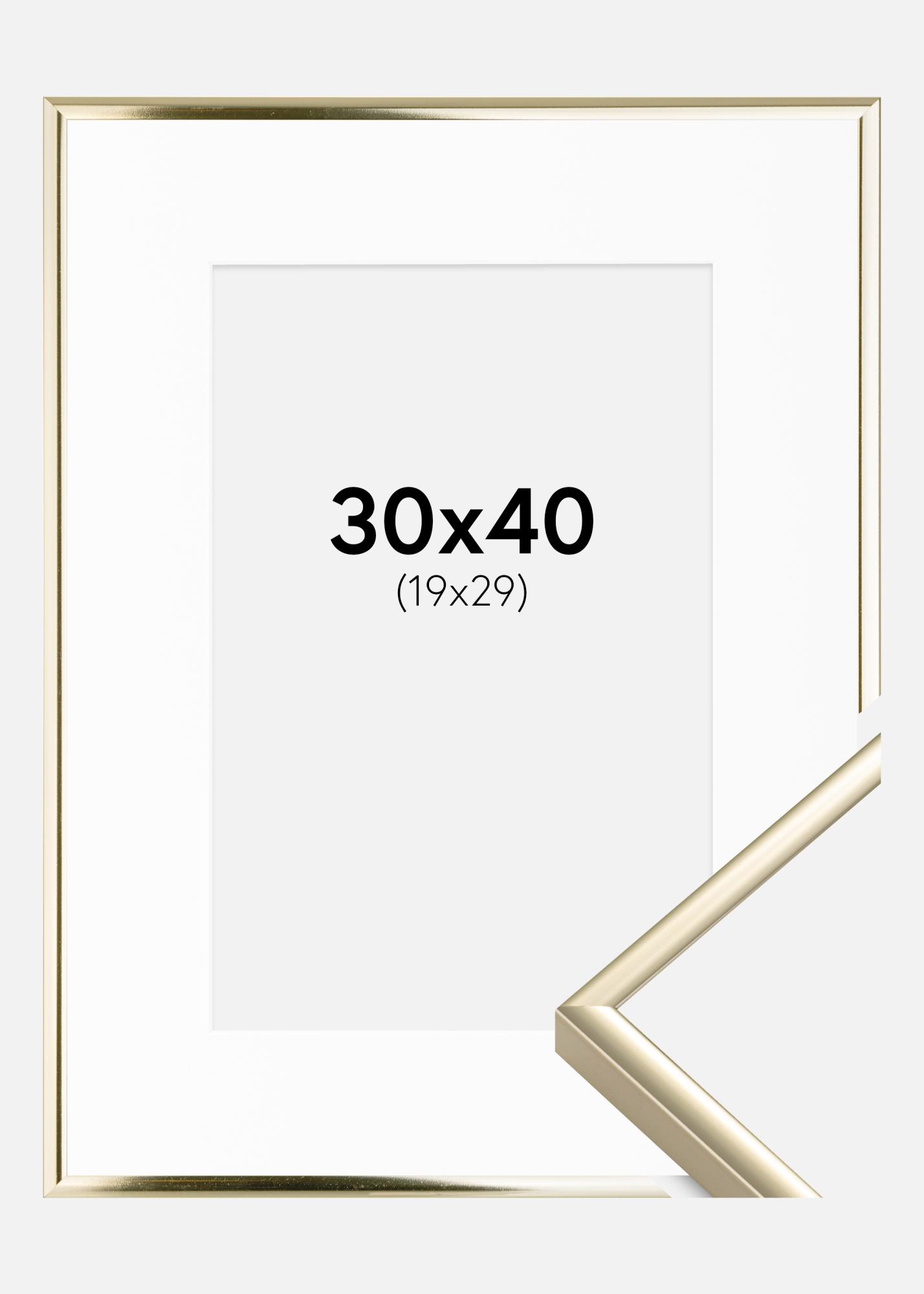 Moldura Alumínio Brilhante Dourado 30x40 cm - Passe-partout Branco 20x30 cm