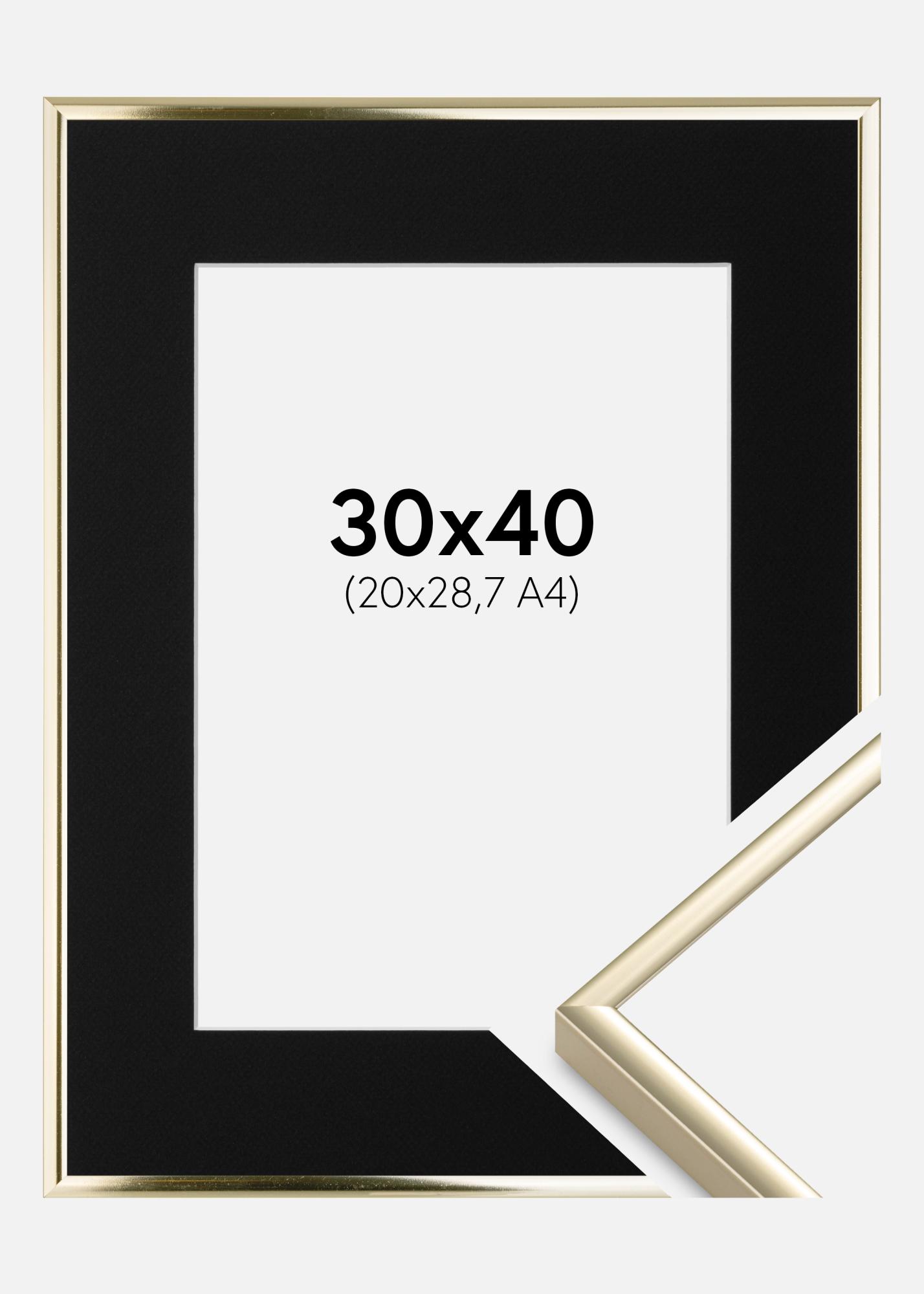 Moldura Alumínio Brilhante Dourado 30x40 cm - Passe-partout Preto 21x29,7 cm