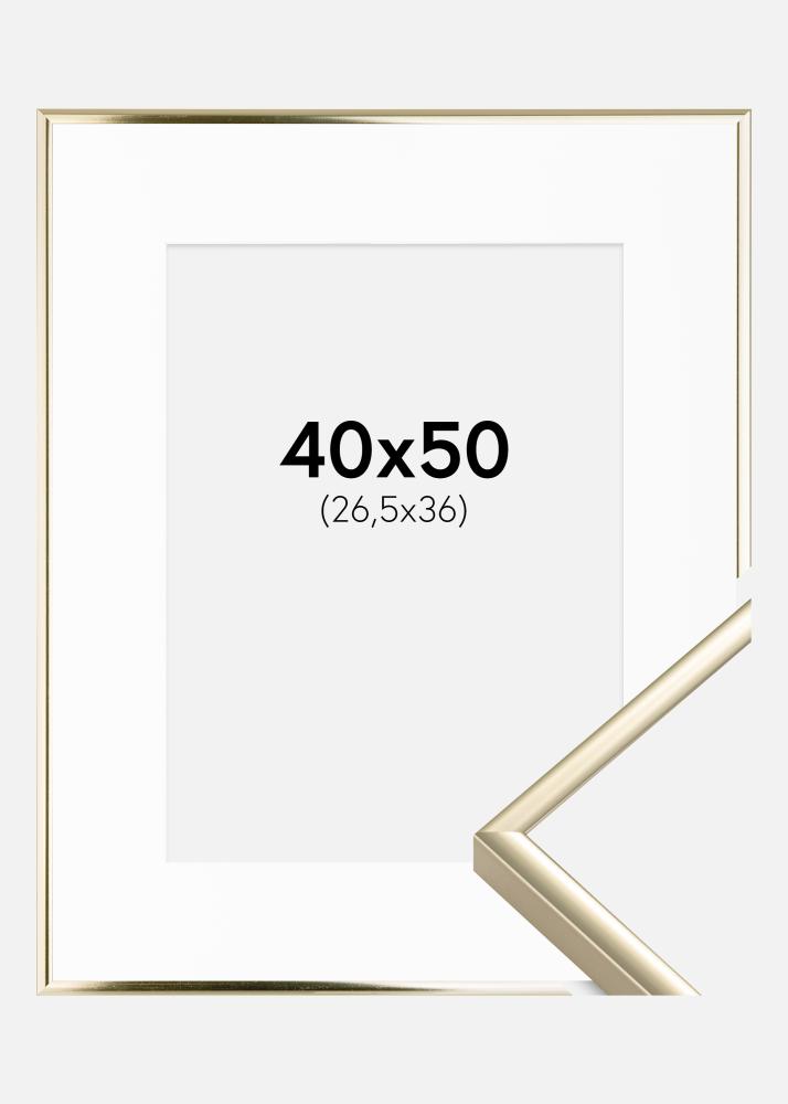 Moldura Alumínio Brilhante Dourado 40x50 cm - Passe-partout Branco 27,5x37 cm