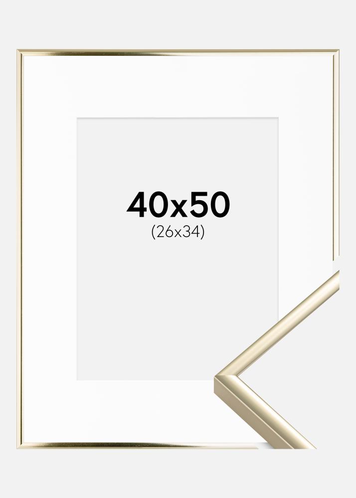 Moldura Alumínio Brilhante Dourado 40x50 cm - Passe-partout Branco 27x35 cm