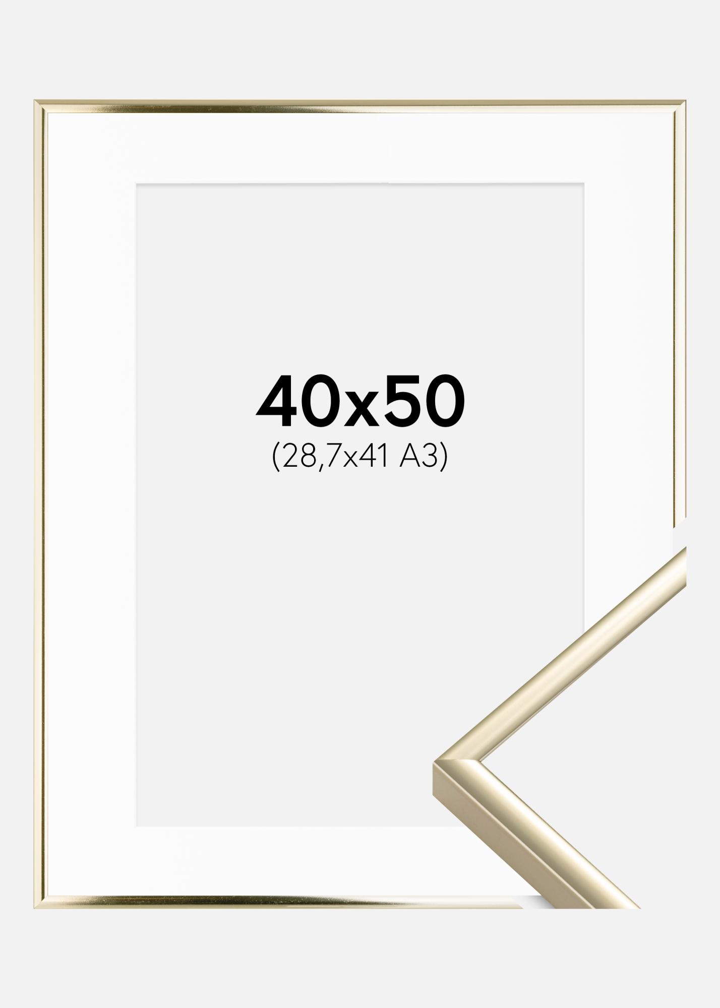 Moldura Alumínio Brilhante Dourado 40x50 cm - Passe-partout Branco 29,7x42 cm