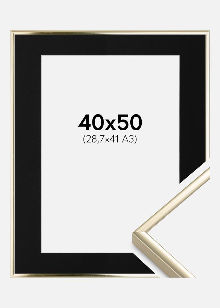 Moldura Alumínio Brilhante Dourado 40x50 cm - Passe-partout Preto 29,7x42 cm