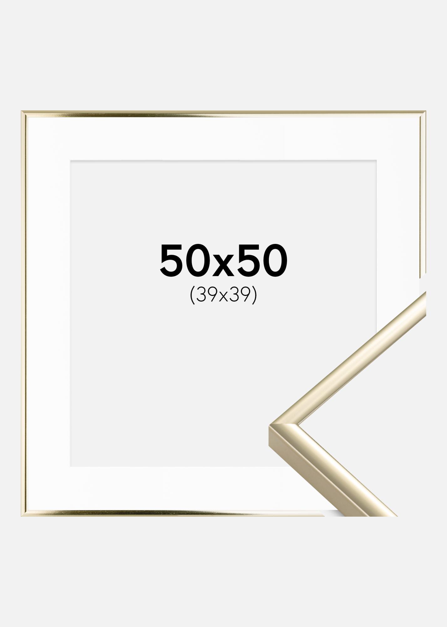 Moldura Alumínio Brilhante Dourado 50x50 cm - Passe-partout Branco 40x40 cm