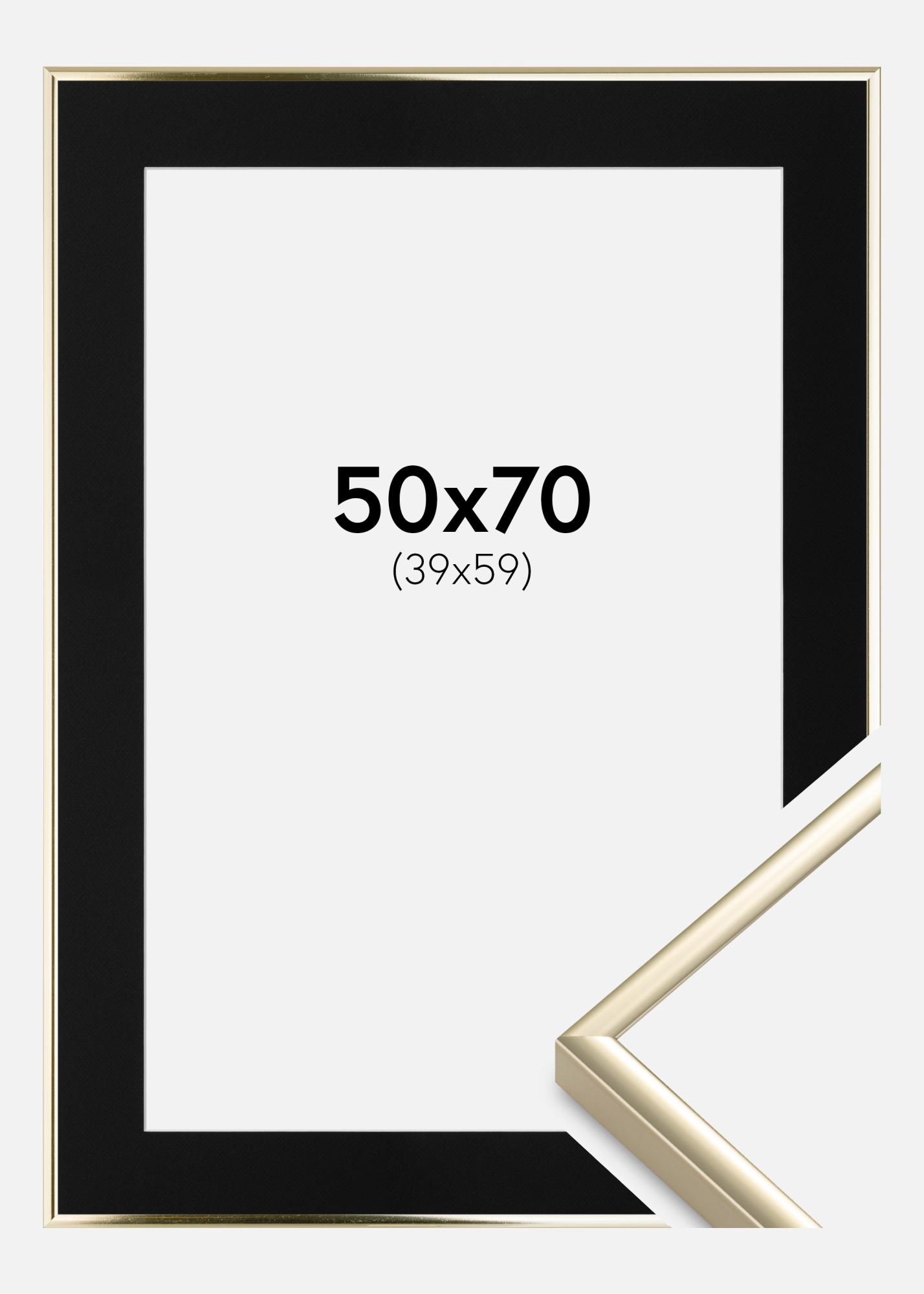 Moldura Alumínio Brilhante Dourado 50x70 cm - Passe-partout Preto 40x60 cm