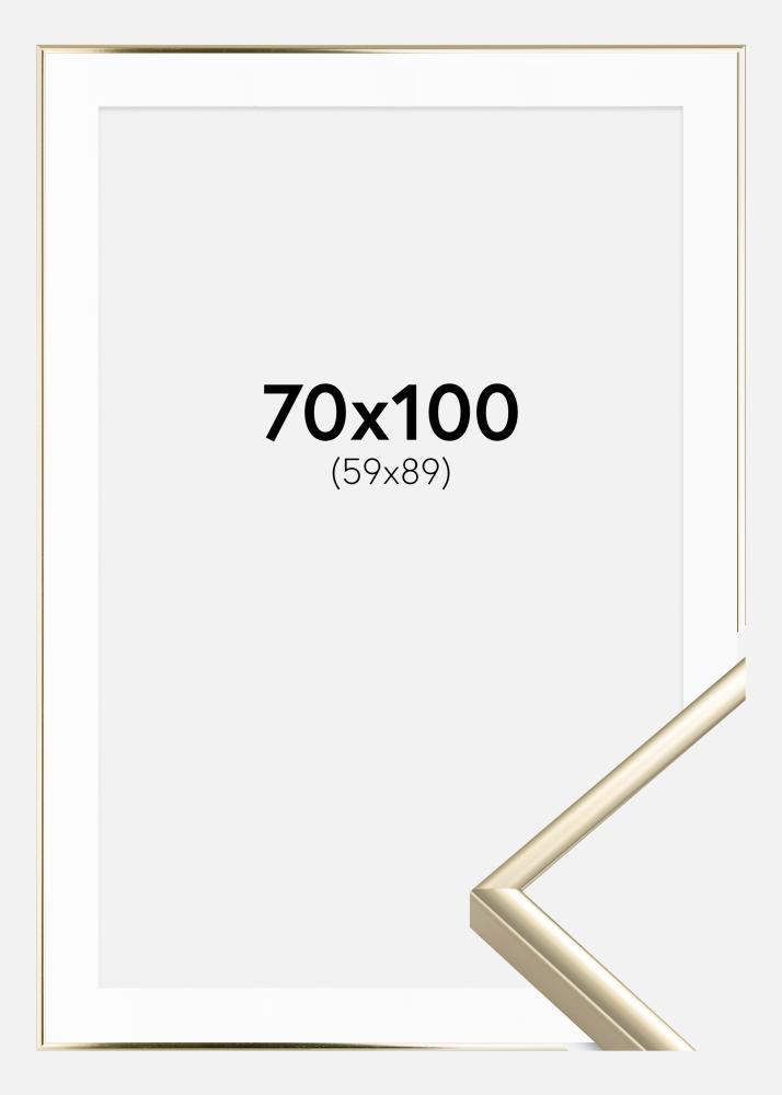 Moldura Alumínio Brilhante Dourado 70x100 cm - Passe-partout Branco 60x90 cm