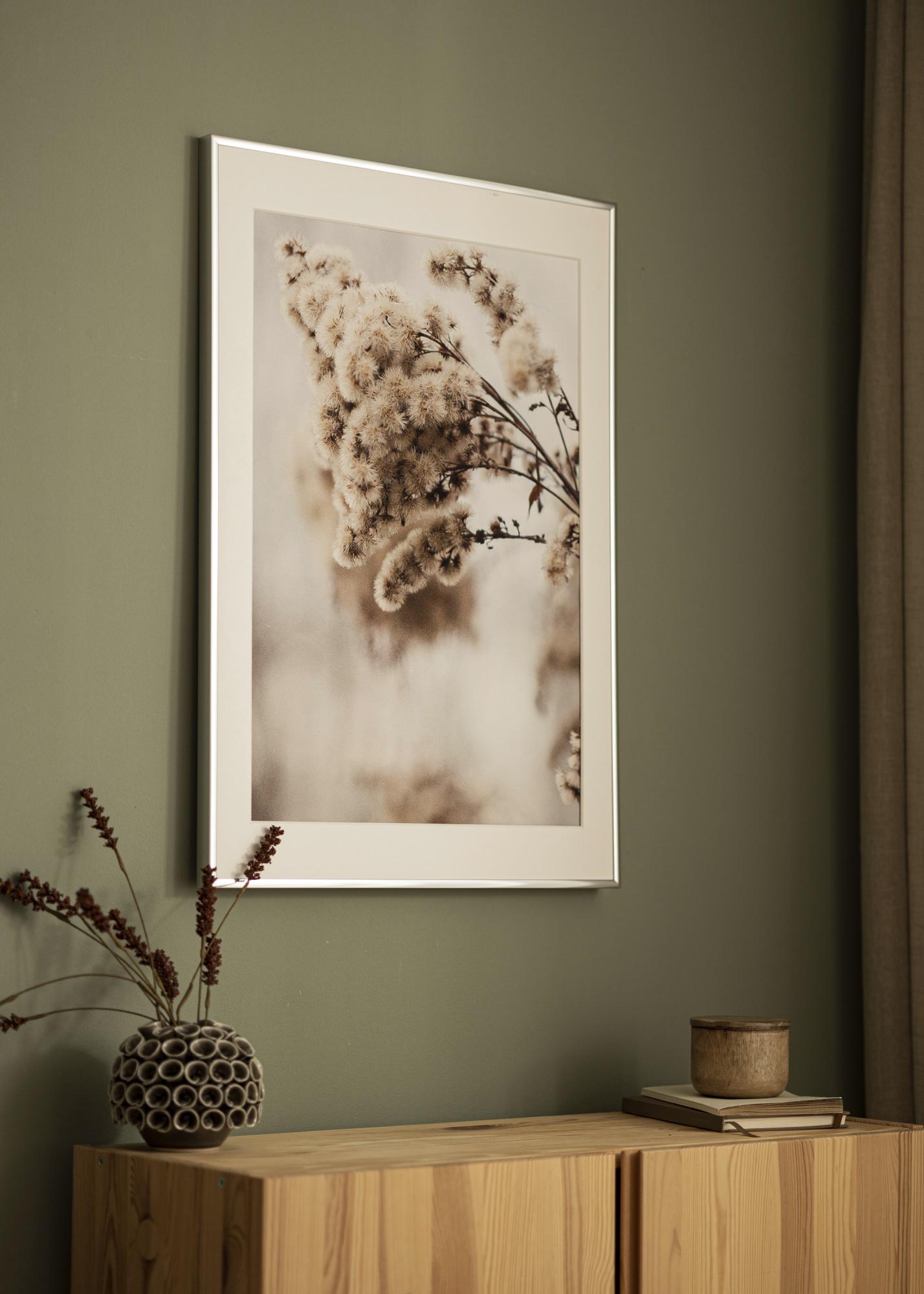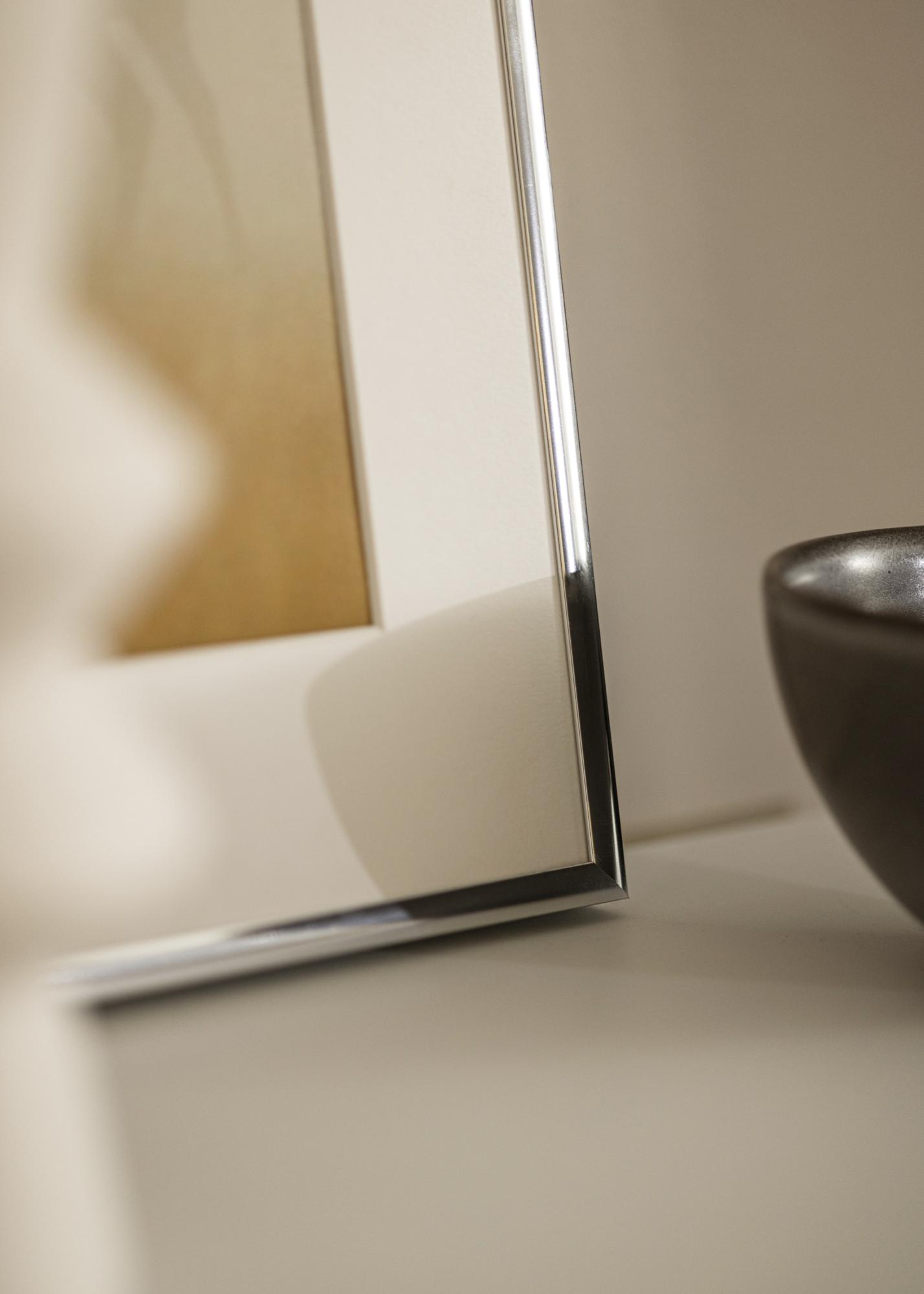 Moldura Alumínio Brilhante Prateado 30x40 cm - Passe-partout Branco 20x30 cm