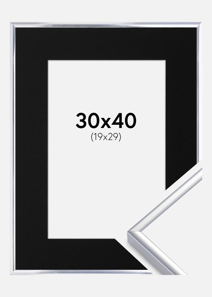 Moldura Alumínio Brilhante Prateado 30x40 cm - Passe-partout Preto 21x30 cm