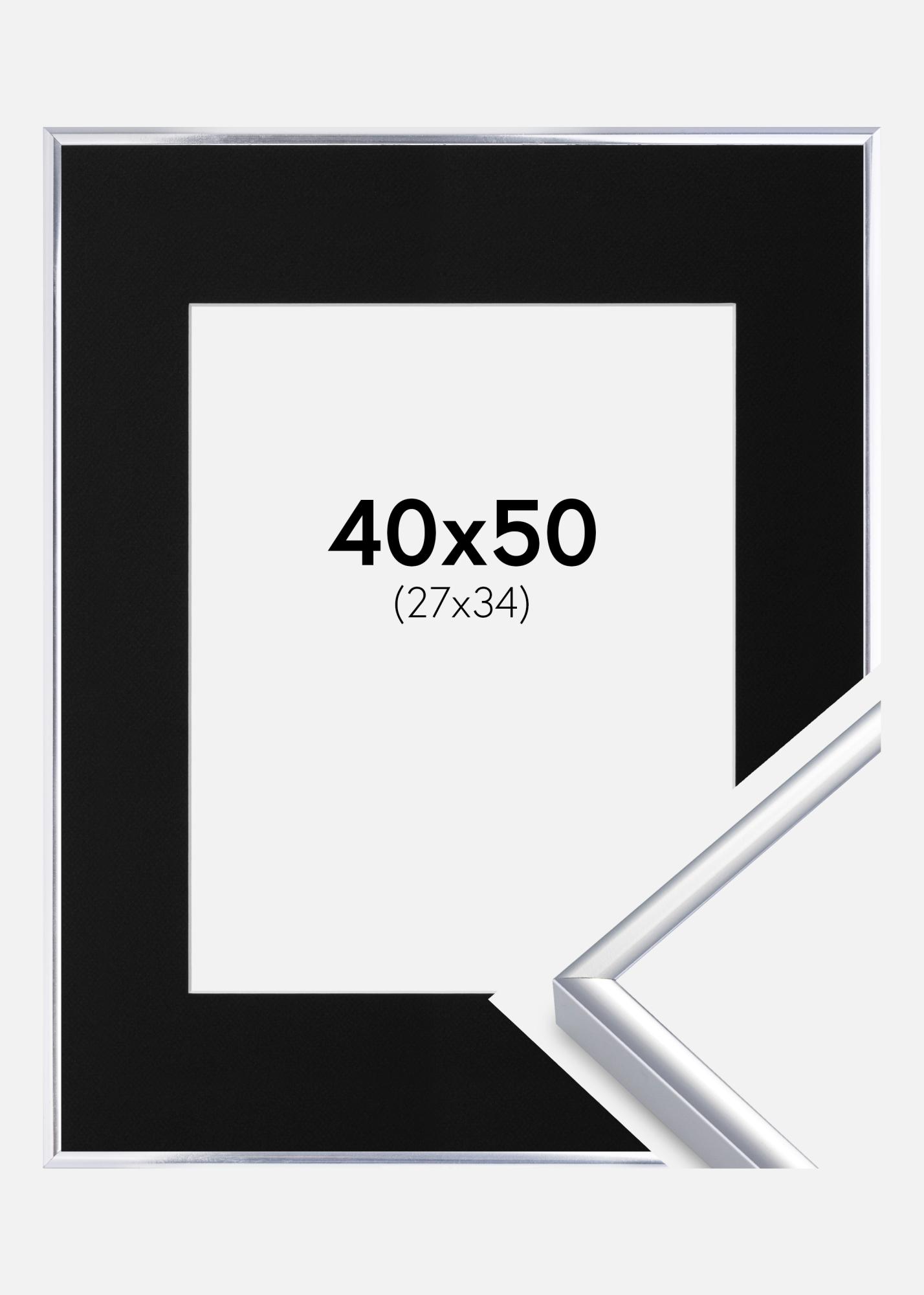 Moldura Alumínio Brilhante Prateado 40x50 cm - Passe-partout Preto 28x35 cm
