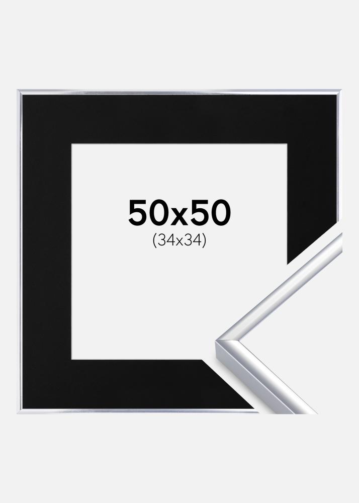 Moldura Alumínio Brilhante Prateado 50x50 cm - Passe-partout Preto 35x35 cm