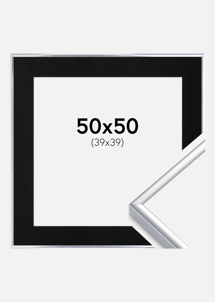 Moldura Alumínio Brilhante Prateado 50x50 cm - Passe-partout Preto 40x40 cm