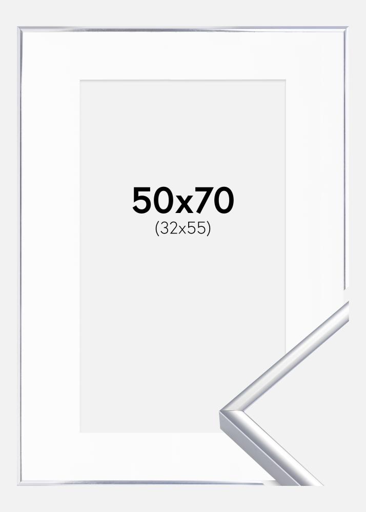 Moldura Alumínio Brilhante Prateado 50x70 cm - Passe-partout Branco 33x56 cm