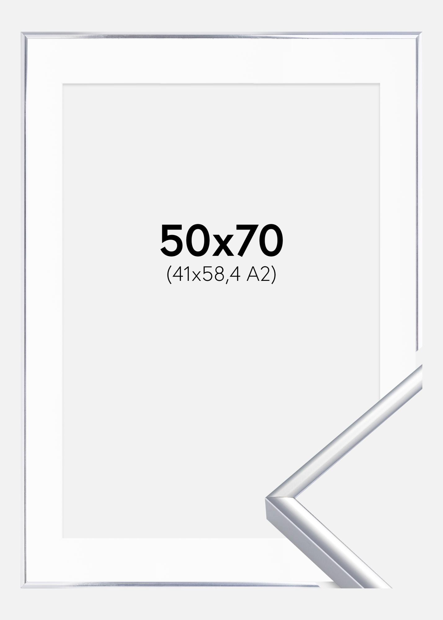 Moldura Alumínio Brilhante Prateado 50x70 cm - Passe-partout Branco 42x59,4 cm