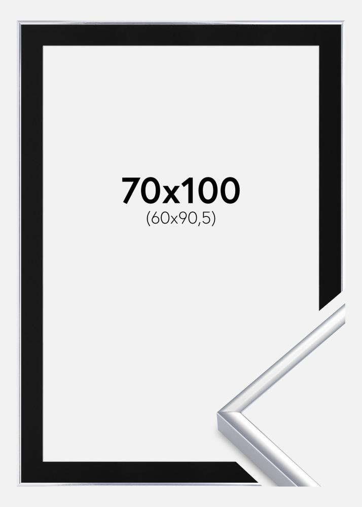 Moldura Alumínio Brilhante Prateado 70x100 cm - Passe-partout Preto 61x91,5 cm