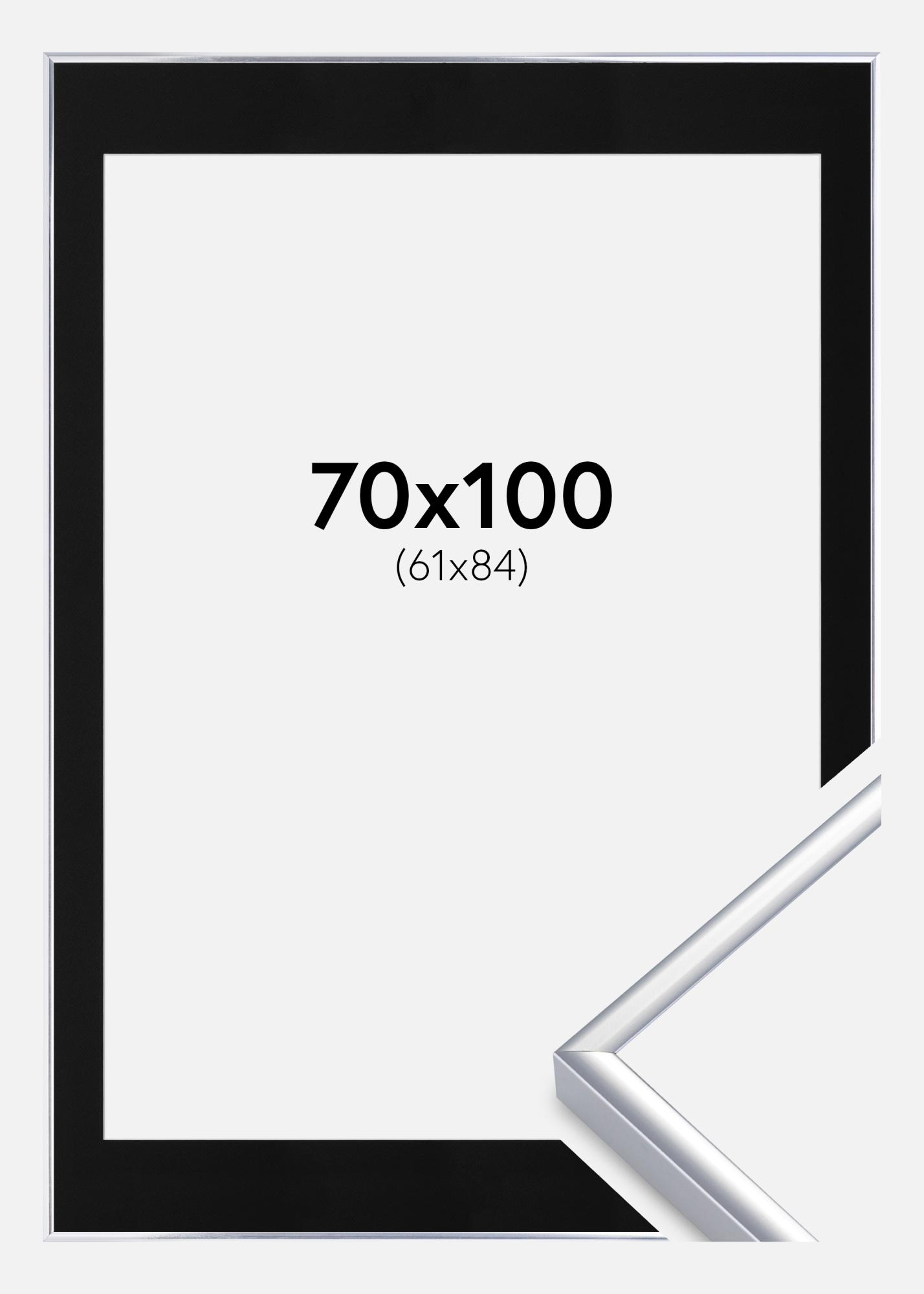 Moldura Alumínio Brilhante Prateado 70x100 cm - Passe-partout Preto 62x85 cm