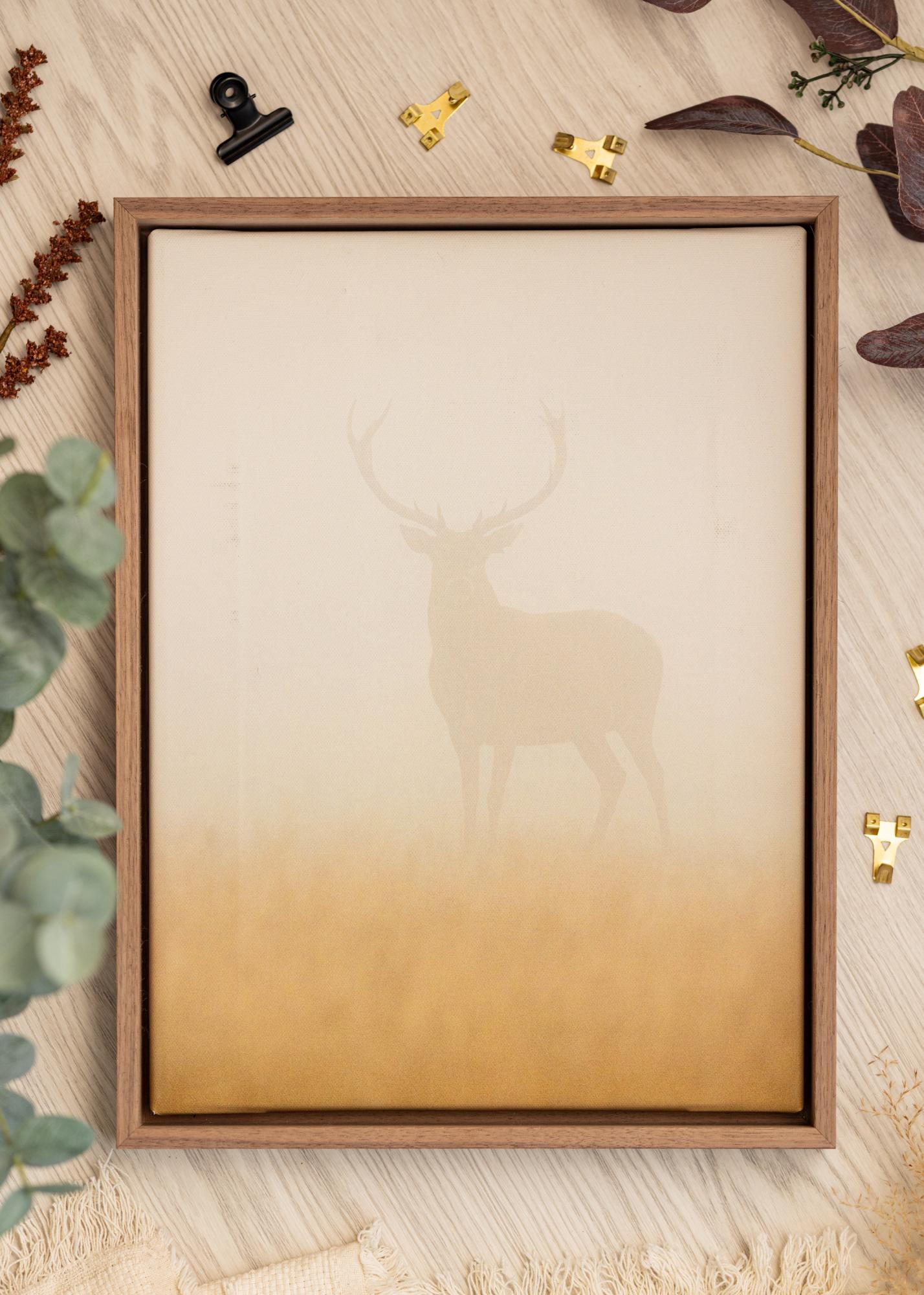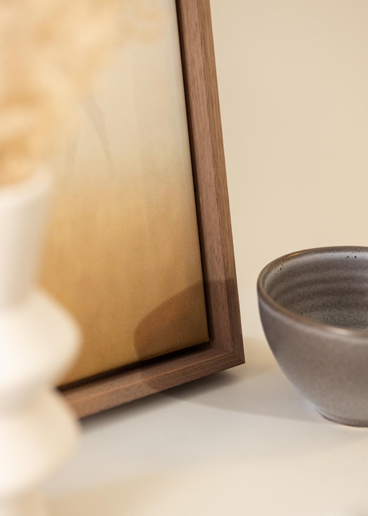 Descubra nossa moldura de tela sob medida Anubis na cor noz, perfeita para dar às suas telas uma moldura elegante. Com uma moldura de 55 mm de largura e uma profundidade de 45 mm, esta moldura foi desenhada para se adaptar a telas com profundidade de 28–38 mm. Isso cria um efeito flutuante que destaca seu motivo de maneira estilosa.