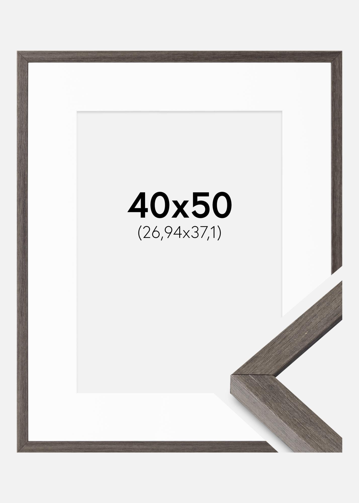 Moldura Ares Cinza Carvalho 40x50 cm - passe-partout Branco 11x15 inches