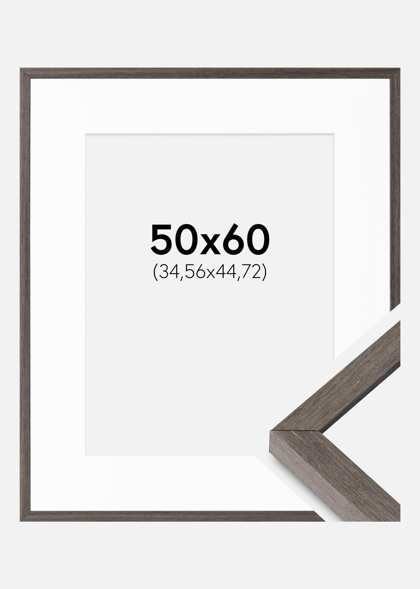 Moldura Ares Cinza Carvalho 50x60 cm - passe-partout Branco 14x18 inches
