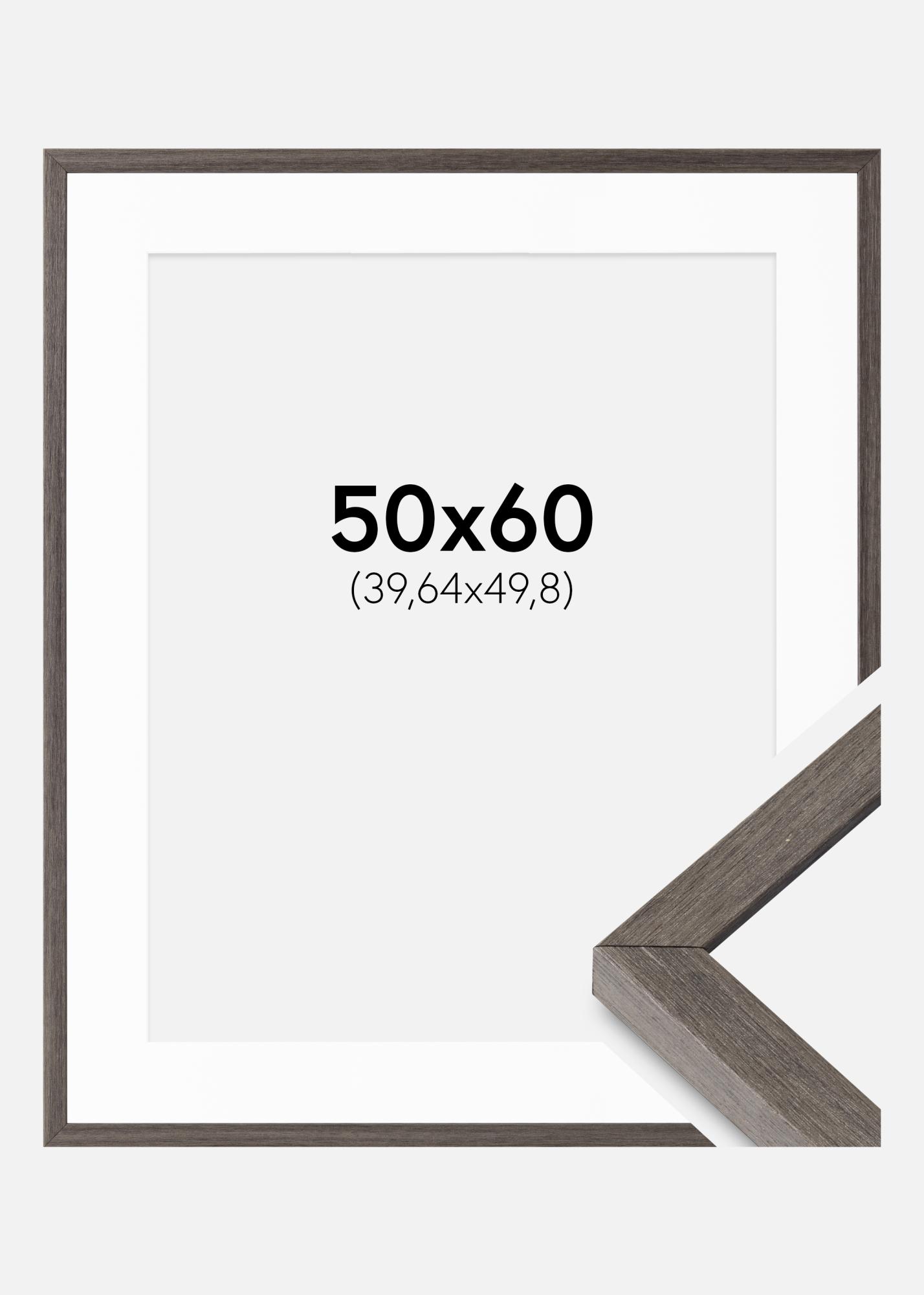 Moldura Ares Cinza Carvalho 50x60 cm - passe-partout Branco 16x20 inches