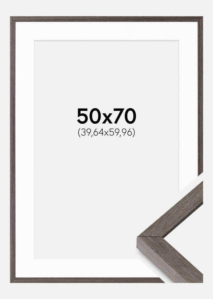 Moldura Ares Cinza Carvalho 50x70 cm - passe-partout Branco 16x24 inches