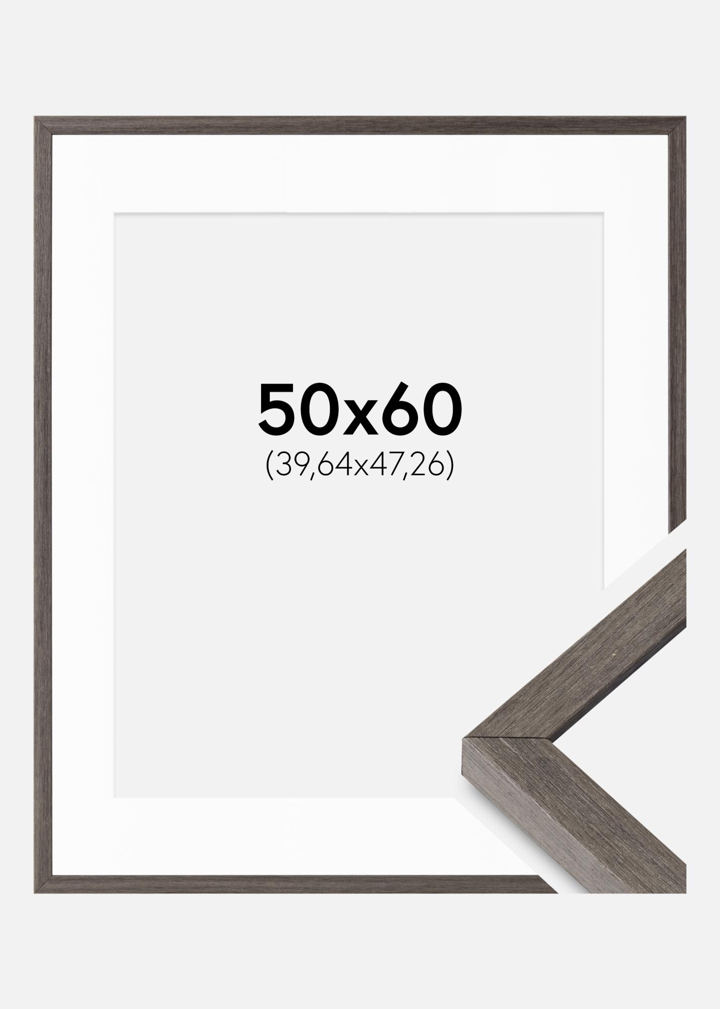 Moldura Ares Cinza Carvalho 50x60 cm - passe-partout Branco 16x19 inches