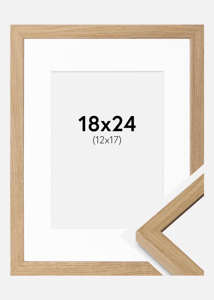 Moldura Ares Natural Carvalho 18x24 cm - passe-partout Branco 13x18 cm