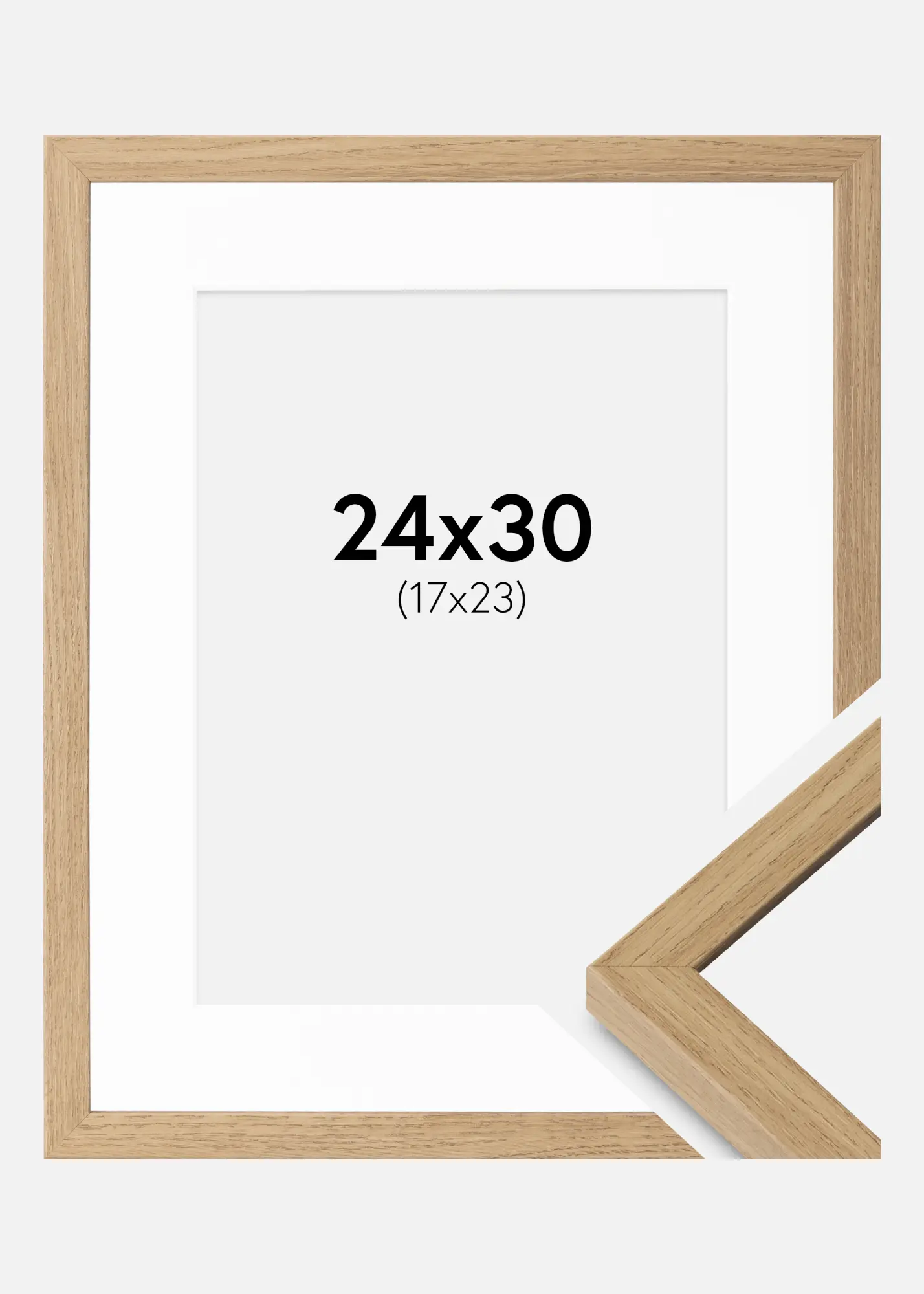 A moldura vem com um passe-partout branco adaptado para fotos no tamanho 18x24 cm. O passe-partout dá uma dimensão extra à sua foto e destaca o motivo de uma forma elegante. A cor branca cria um belo contraste com a moldura de padrão de carvalho e oferece uma sensação atemporal.