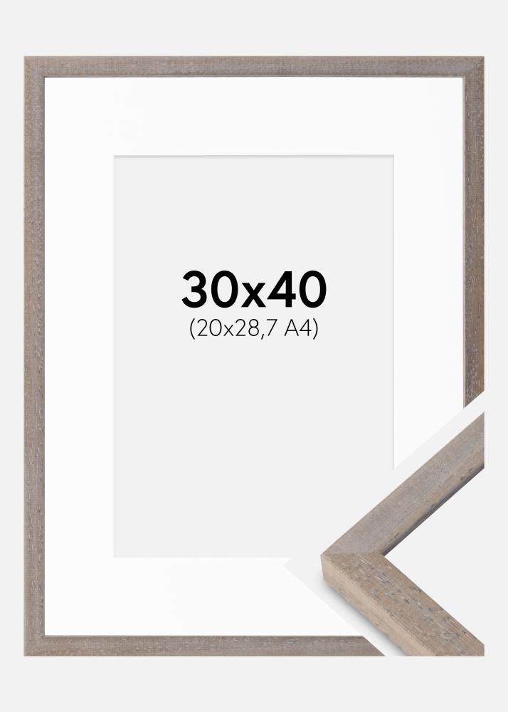 Moldura Ares Cinza 30x40 cm - passe-partout Branco 21x29,7 cm