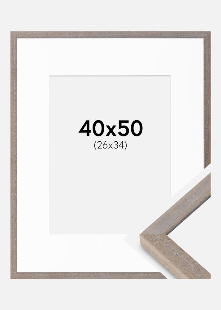 Moldura Ares Cinza 40x50 cm - passe-partout Branco 27x35 cm