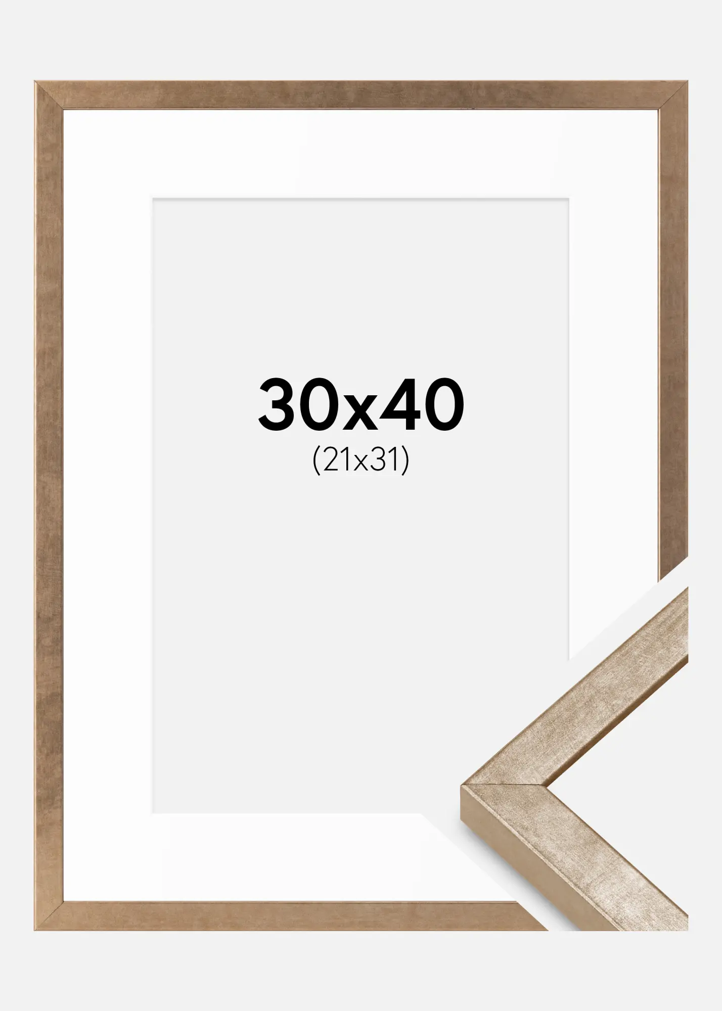 Uma elegante moldura de cor latão com passe-partout pode transformar qualquer ambiente, proporcionando uma moldura sofisticada para suas fotos. Esta moldura tem uma largura de 15 mm e uma profundidade de 20 mm, oferecendo uma moldura estável e estilosa para suas fotos favoritas. Com dimensões externas de 32x42 cm, encaixa perfeitamente para fotos de tamanho 22x32 cm.