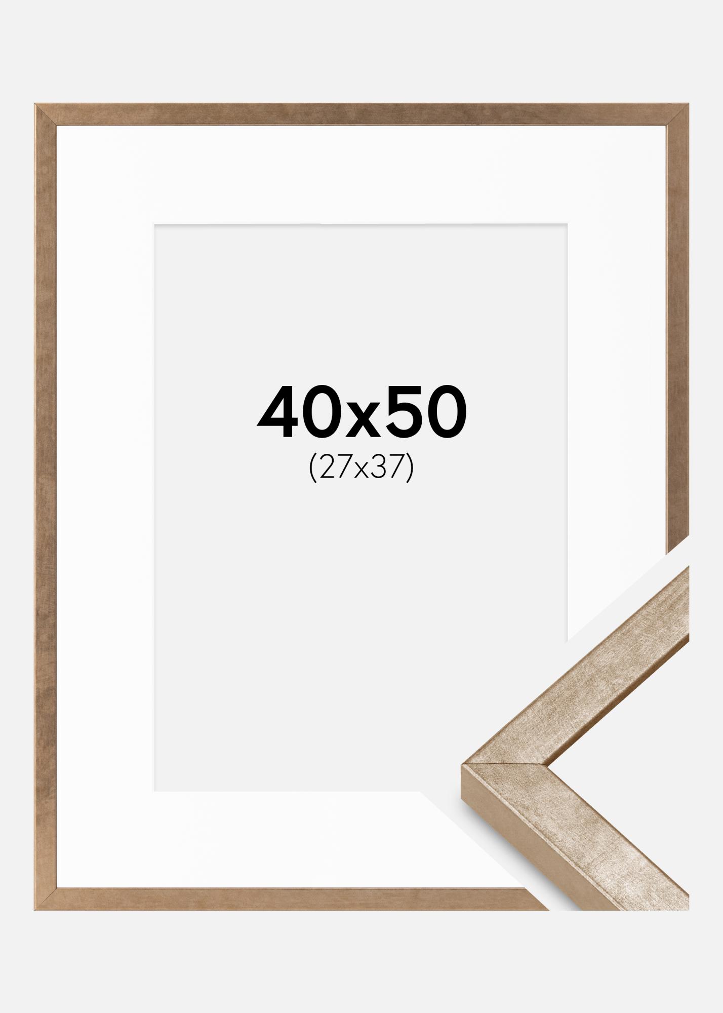 Moldura Ares Latão 40x50 cm - passe-partout Branco 28x38 cm