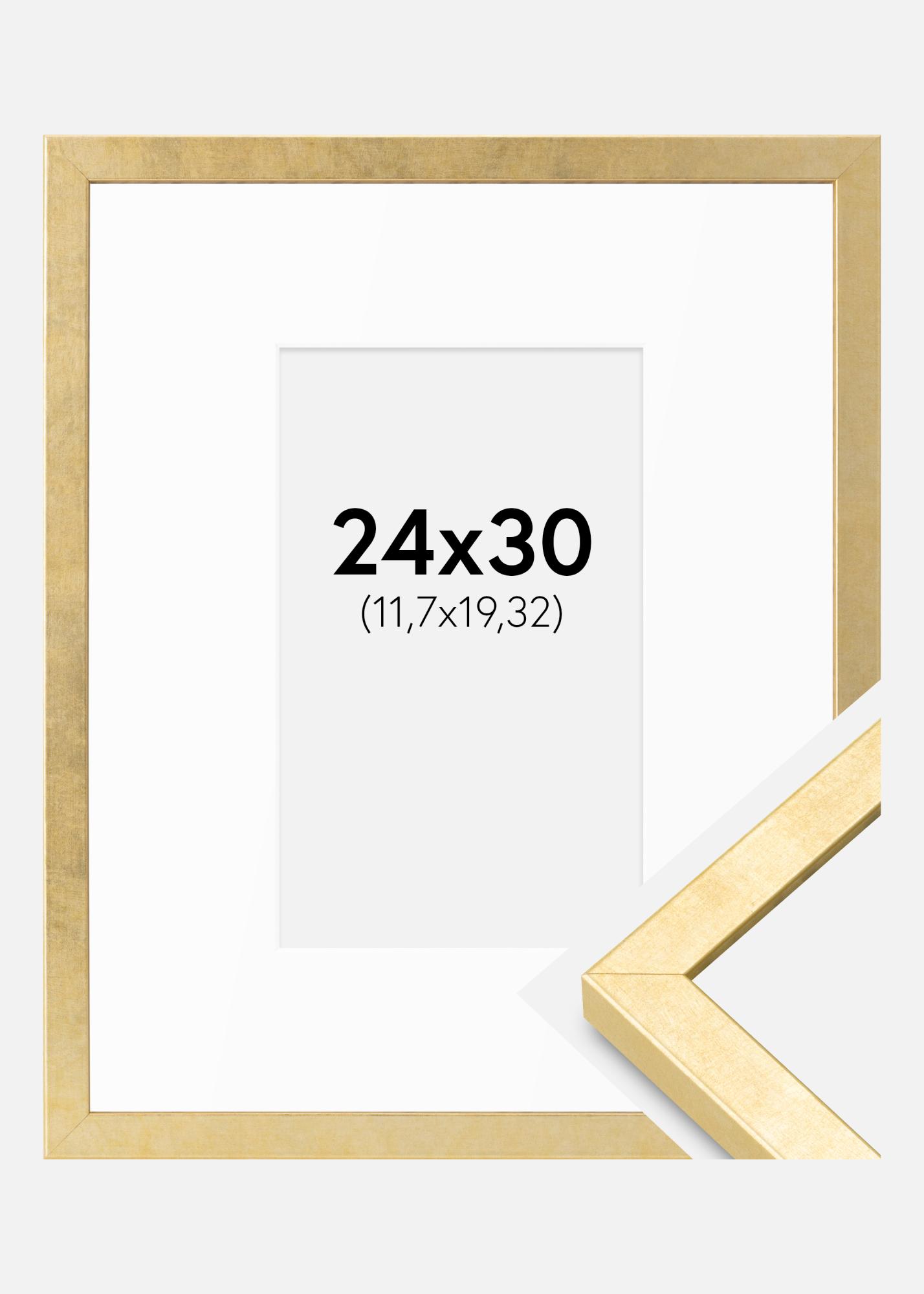Moldura Ares Ouro 24x30 cm - passe-partout Branco 5x8 inches