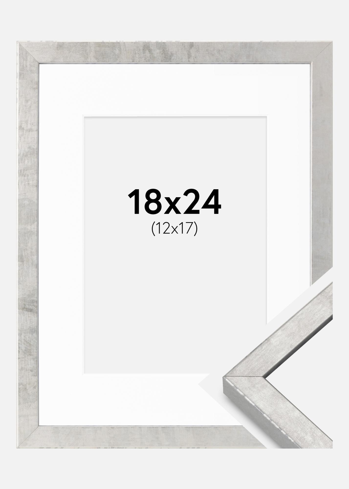 Moldura Ares Prata 18x24 cm - passe-partout Branco 13x18 cm