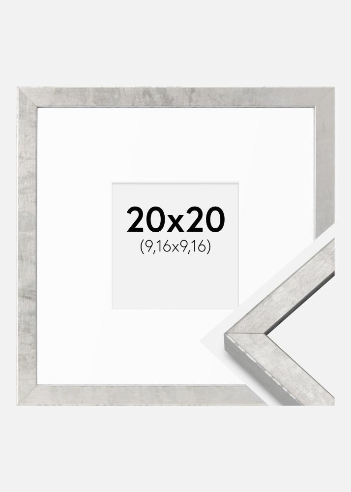 Moldura Ares Prata 20x20 cm - passe-partout Branco 4x4 inches