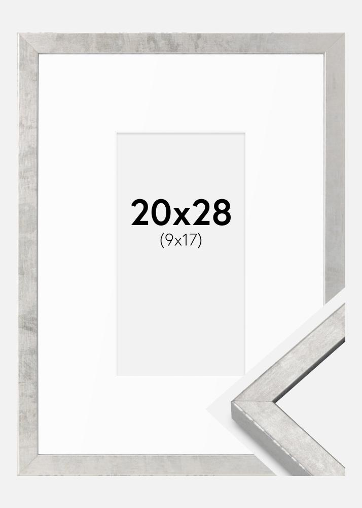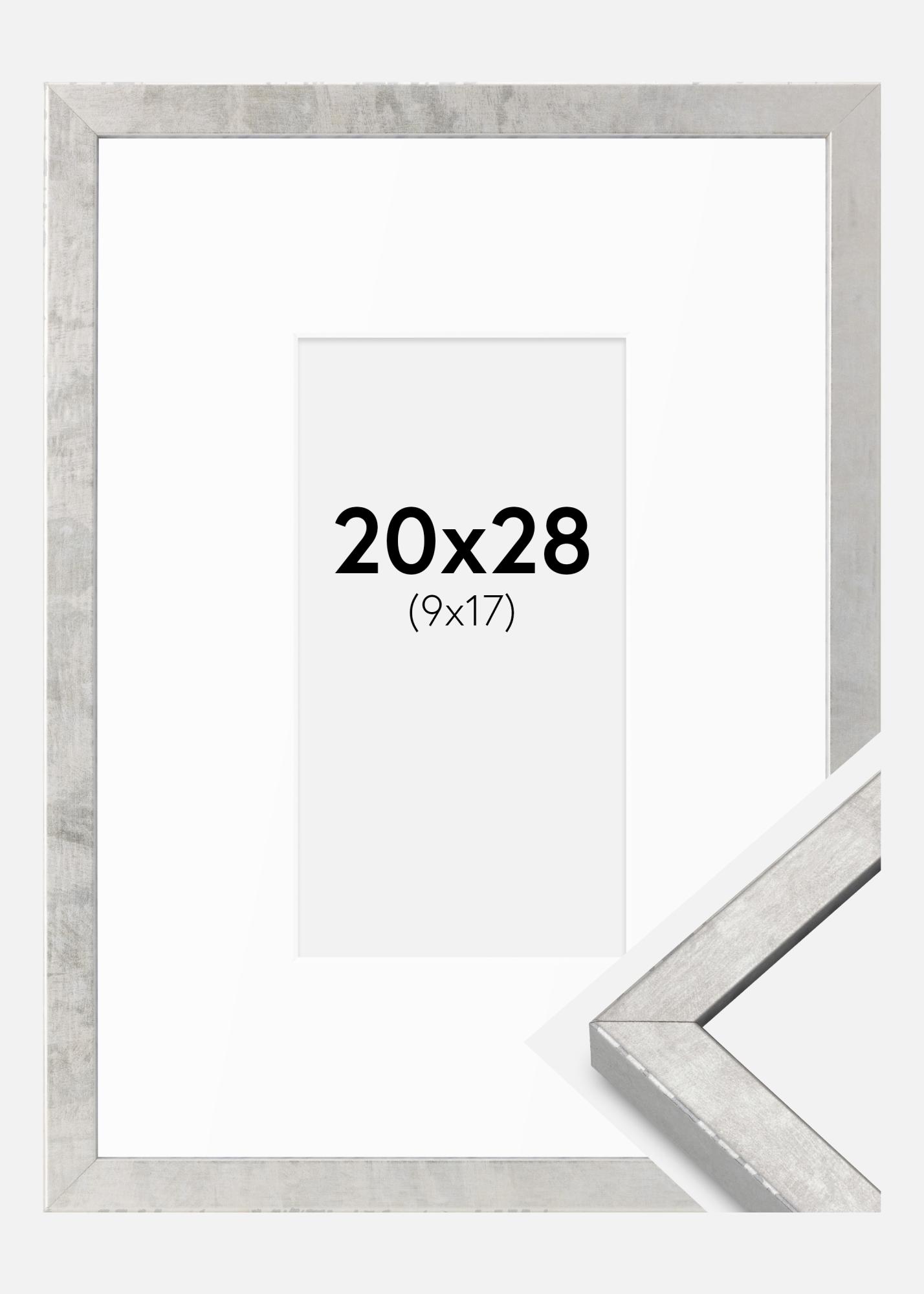 Moldura Ares Prata 20x28 cm - passe-partout Branco 10x18 cm