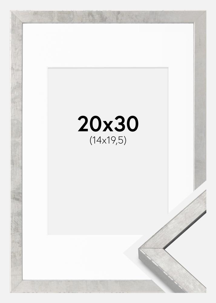 Moldura Ares Prata 20x30 cm - passe-partout Branco 15x21 cm