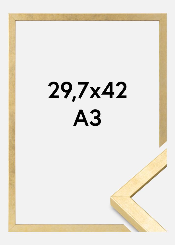 Crie uma parede de quadros elegante com nossa exclusiva moldura dourada no tamanho 29,7x42 cm (A3), perfeita para destacar suas obras de arte ou fotografias. Esta moldura para fotos na cor dourada é um verdadeiro atrativo que adiciona um toque de luxo à sua casa ou escritório. Feita de madeira de ayo de alta qualidade, a moldura oferece uma construção durável e estável projetada para durar.