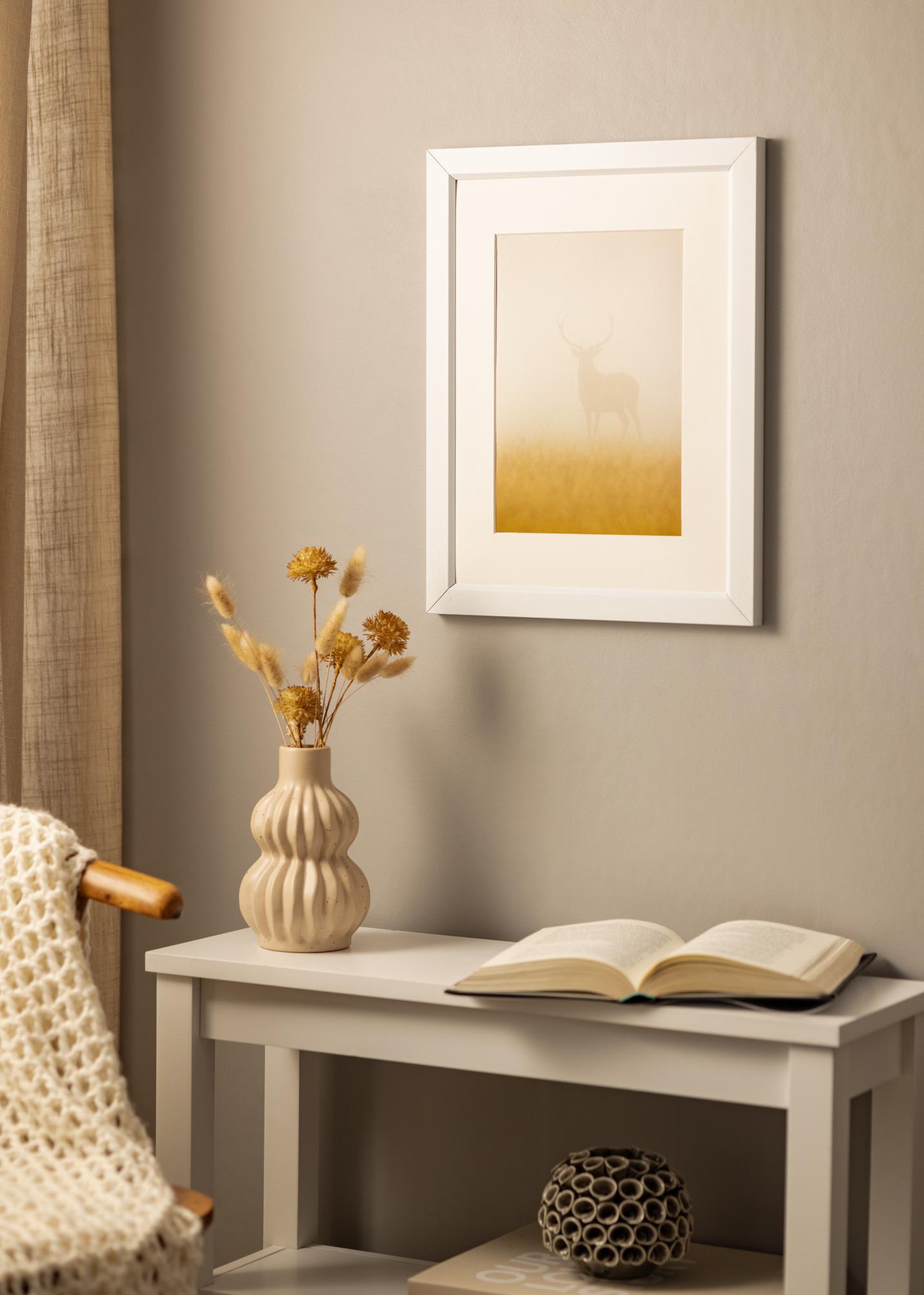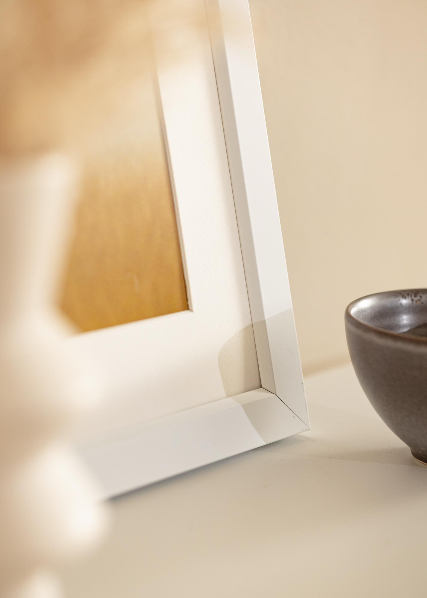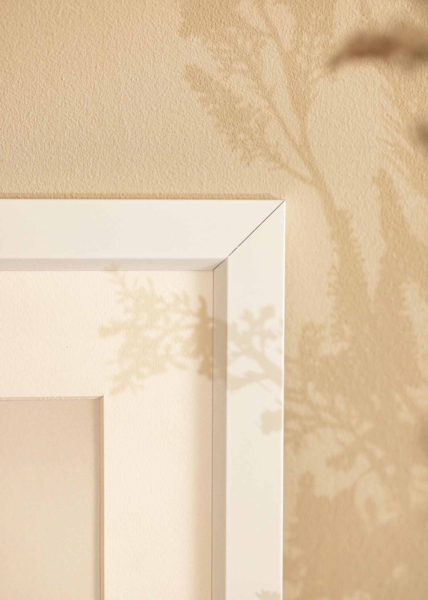 Moldura de alumínio branco elegante, com uma borda interna chanfrada que confere um visual elegante à tela e se adapta bem a todos os tipos de interiores. Uma moldura branca combina com todos os tipos de imagens, permitindo que o foco esteja totalmente no motivo e destacando-o. Isso é especialmente eficaz com motivos coloridos ou gráficos que criam contraste com o branco. Recomendamos combinar diferentes tipos de molduras brancas com motivos em um tema para criar uma galeria de parede que seja o destaque da sala de estar.