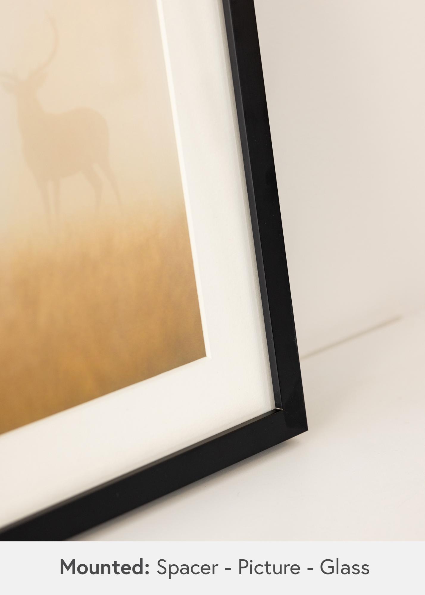 Fabricada em pinho, esta moldura é durável e leve, o que a torna fácil de manusear e montar. Uma característica única do Balder Preto é a lista de distância inclusa. Esta lista cria um espaçamento entre o vidro e a imagem, proporcionando um efeito de profundidade e permitindo que a imagem seja colocada mais para dentro da moldura ou flutuando entre o vidro e o fundo. Isto proporciona uma moldura elegante e exclusiva que realmente destaca o motivo.