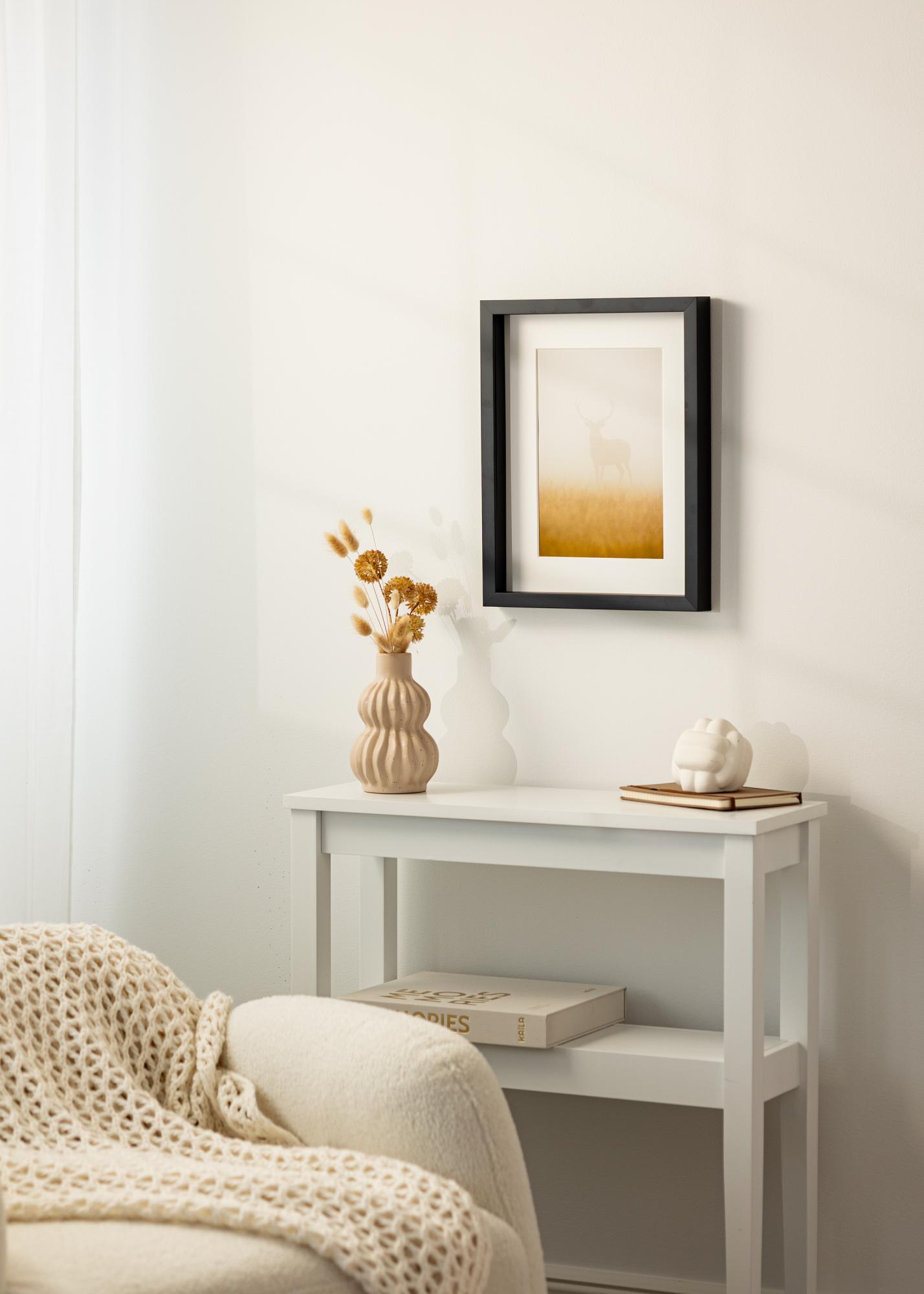 A moldura é fabricada em nossa própria oficina de molduras, o que nos permite garantir alta qualidade e precisão em cada detalhe. Como o produto é sob medida, é importante notar que a compra não pode ser cancelada após o pedido. Escolha o Balder Preto para uma moldura personalizada e única que realmente faz justiça às suas imagens.