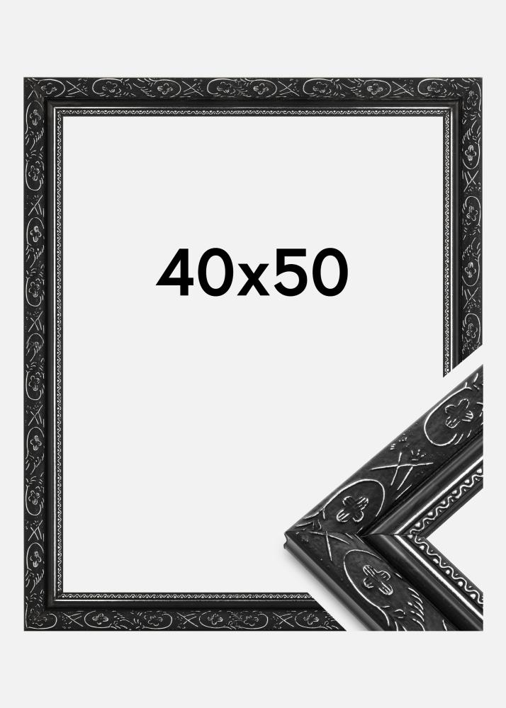 Barock Preta é uma magnífica moldura de madeira em estilo retro com belos enfeites com detalhes prateados próximos ao motivo. Perfeita quando procura uma ampla e bela moldura de madeira em estilo antigo. Uma ótima escolha para ampliações de que gosta muito.