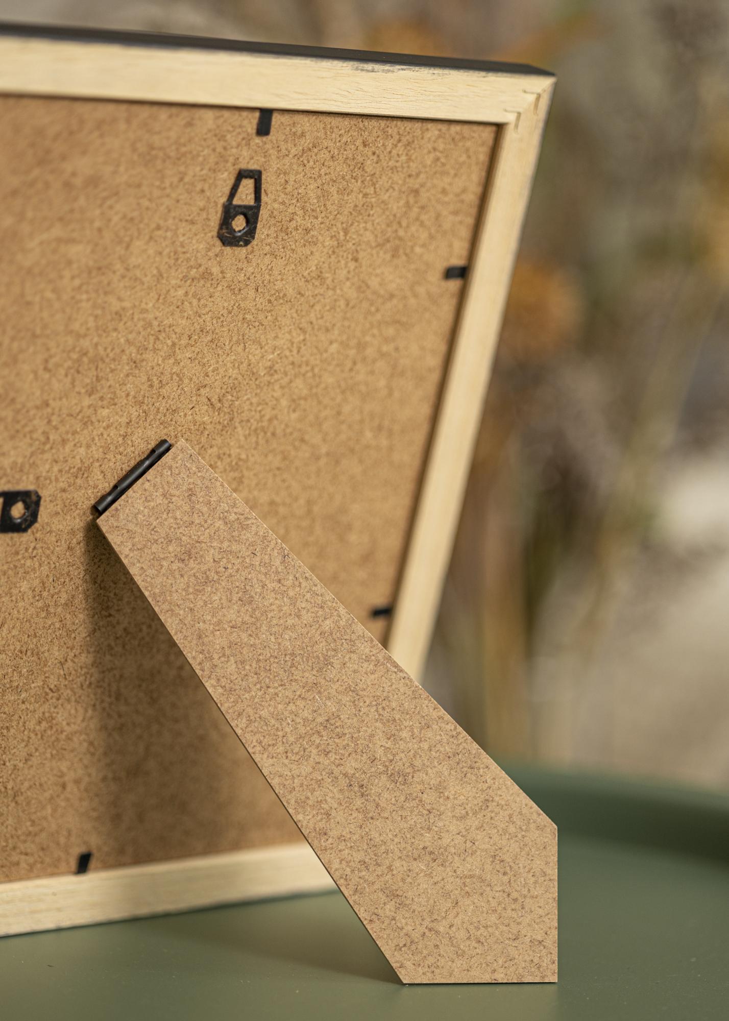 Na parte de trás desta moldura para quadros, encontrará suportes de parede para pendurá-la na parede tanto na posição vertical quanto na horizontal. Isso permite que troque facilmente as imagens na moldura, independentemente do formato das novas imagens. Tamanhos de moldura de até 21x29,7 cm também possuem pés integrados, o que permite que eles se tornem uma bela decoração na mesa de cabeceira ou na beirada da janela. A montagem das suas imagens é feita com pequenos pregos dobráveis na parte de trás da moldura, com os quais pode soltar a parte traseira e colocar as suas imagens ao lado do vidro da moldura.