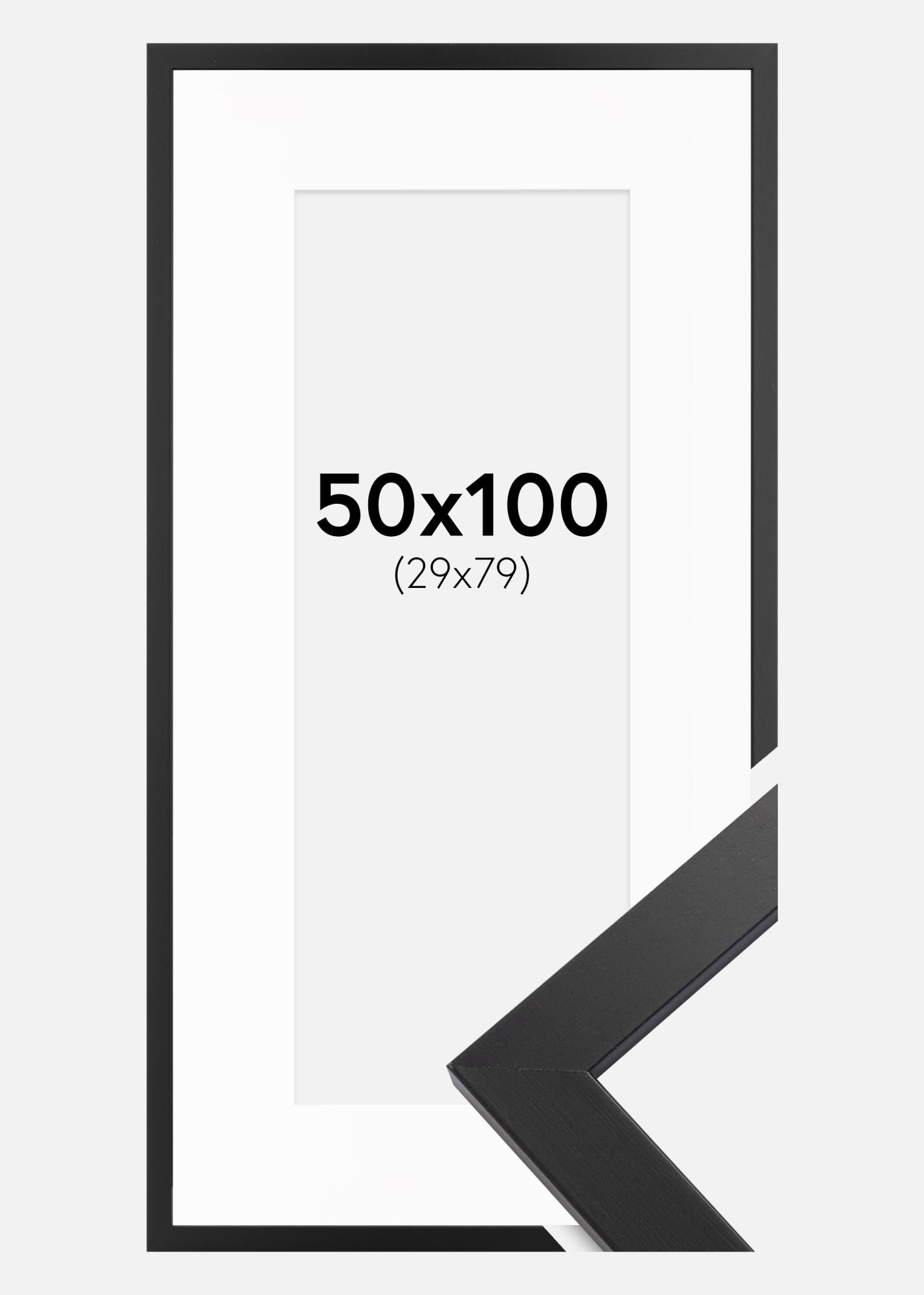 Moldura Black Wood 50x100 cm - Passe-partout Branco 30x80 cm